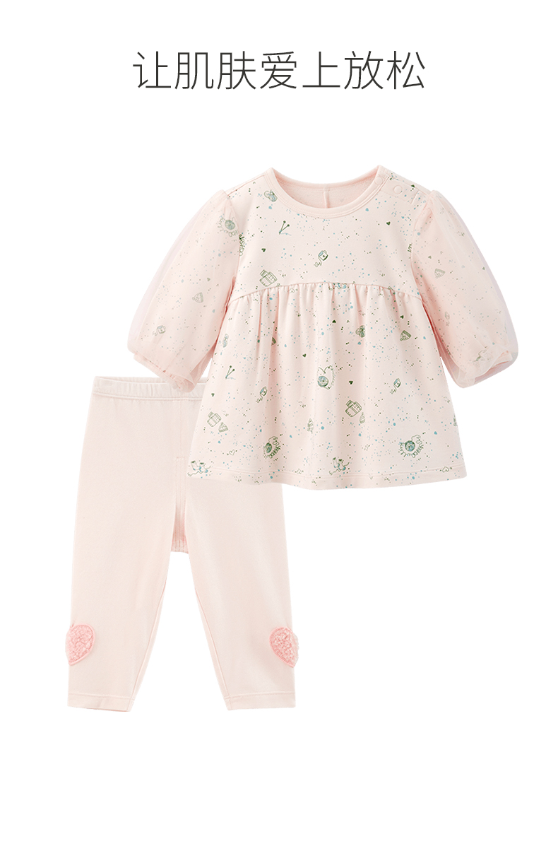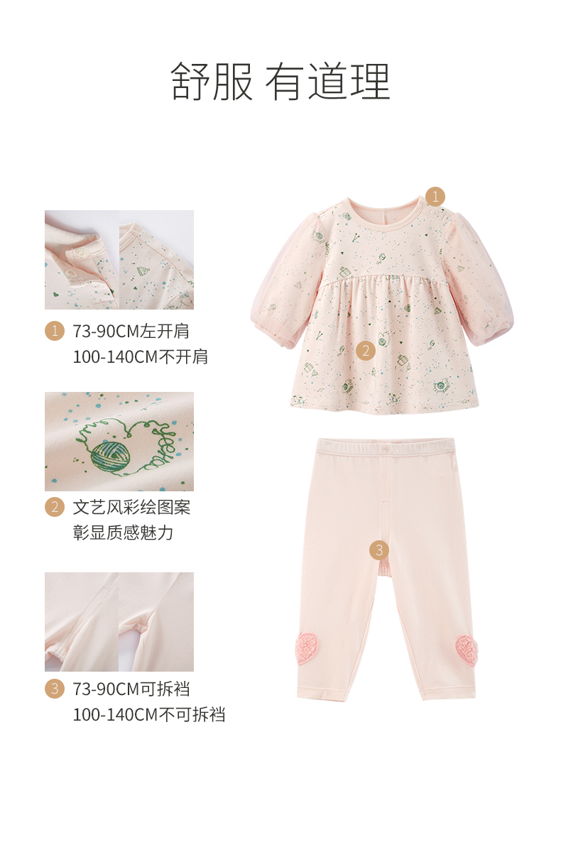 英氏儿童家居服套装春秋款莫代尔女童长袖连衣裙 YZJCJ32029A