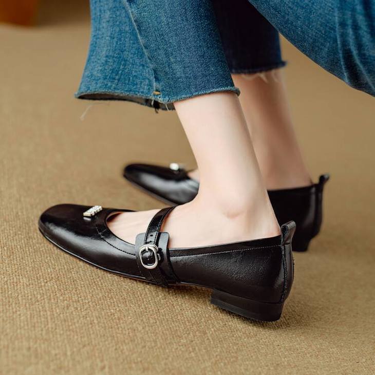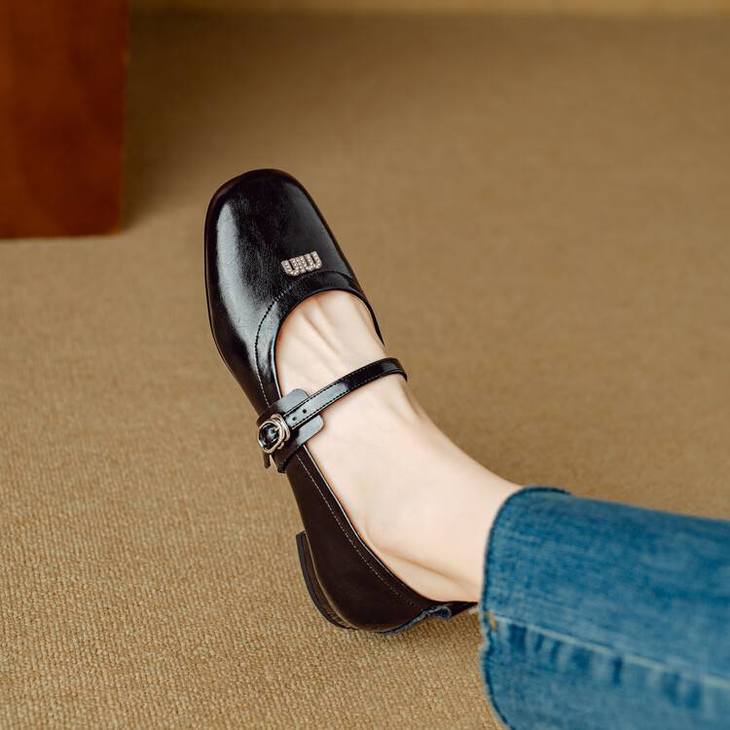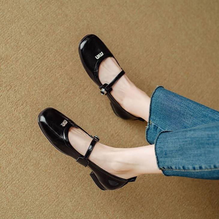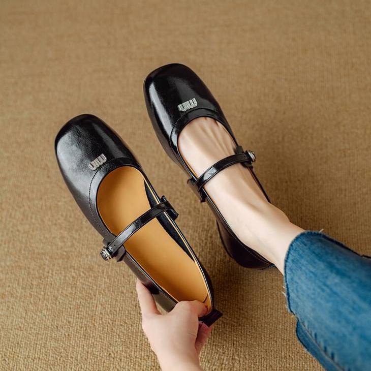 【预售5天】里外全皮玛丽珍鞋低跟新品圆头一字带扣低帮浅口单鞋女NJMK&K1027