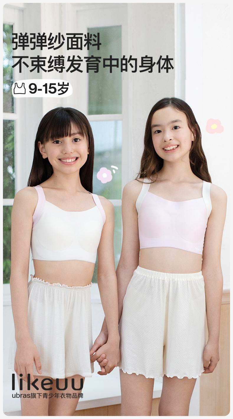 【上新】ubras旗下likeuu发育期少女内衣女大童初高学生V字宽肩带少女文胸