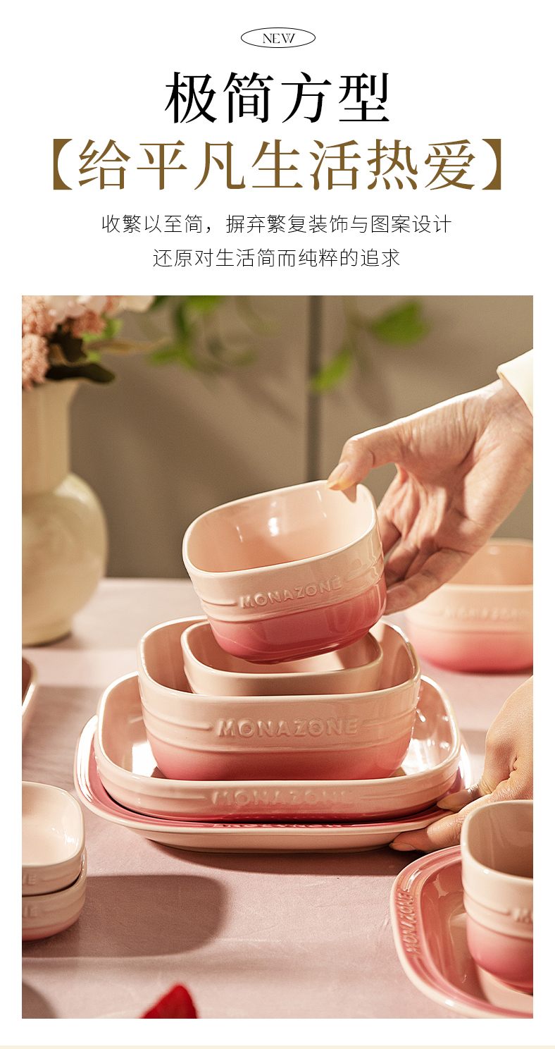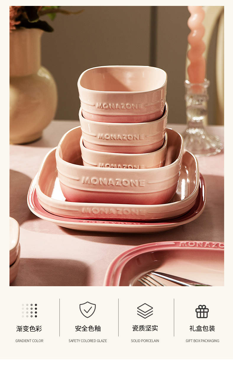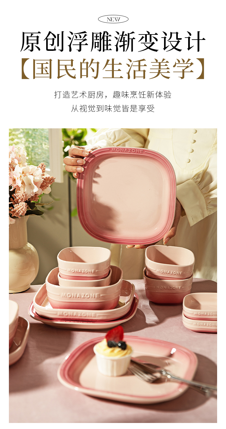 摩登主妇MONAZONE方形餐具家用饭碗盘子新婚生日礼物碗碟套装礼盒
