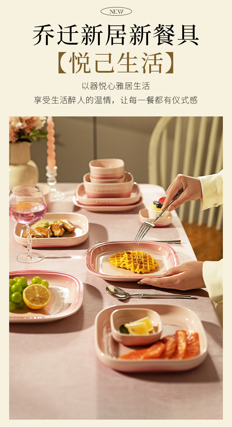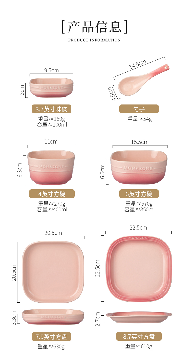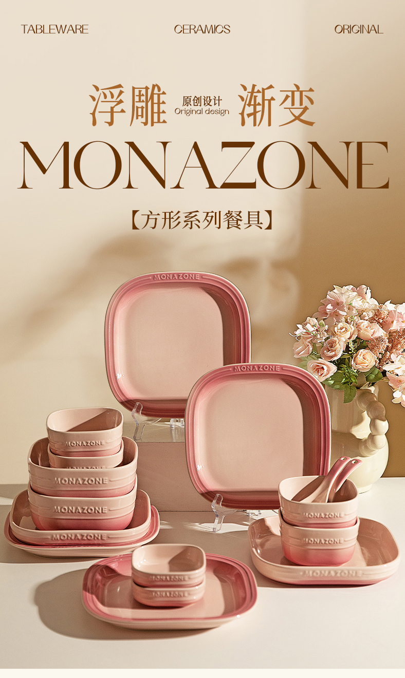 摩登主妇MONAZONE方形餐具家用饭碗盘子新婚生日礼物碗碟套装礼盒