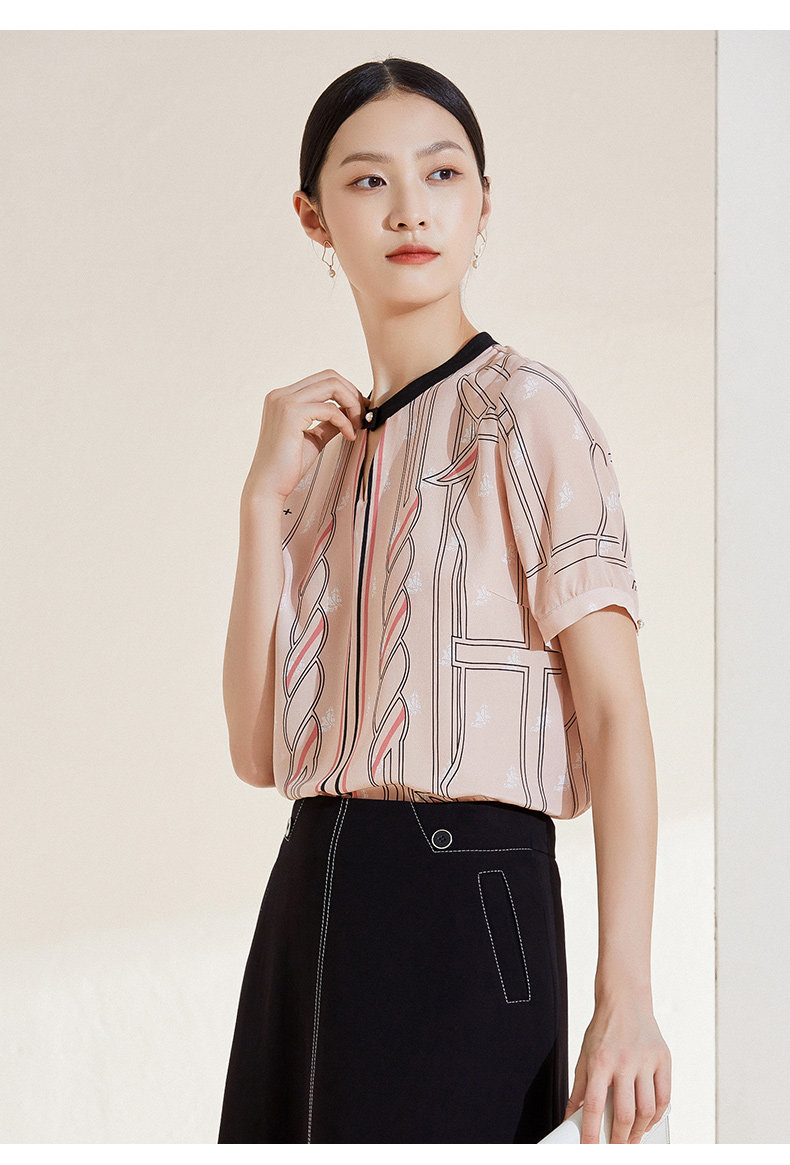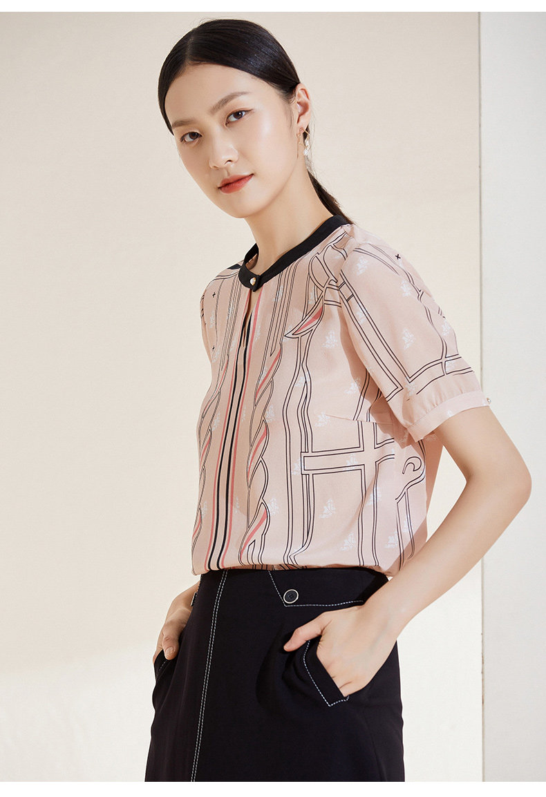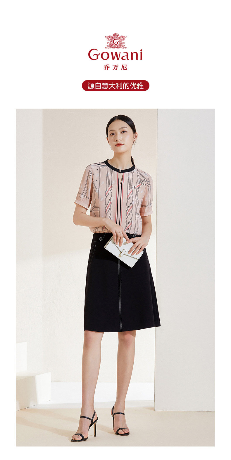 乔万尼夏季新款重磅真丝衬衫拼色设计衬衣EI2C806