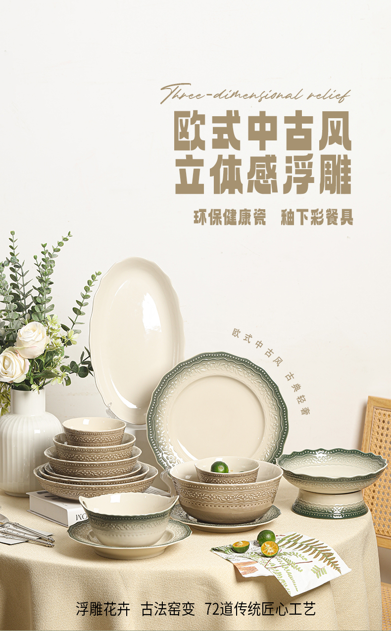 【顺祥陶瓷】碗碟套装家用中式餐具 釉下彩 黛翡