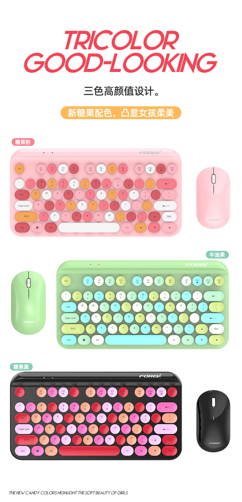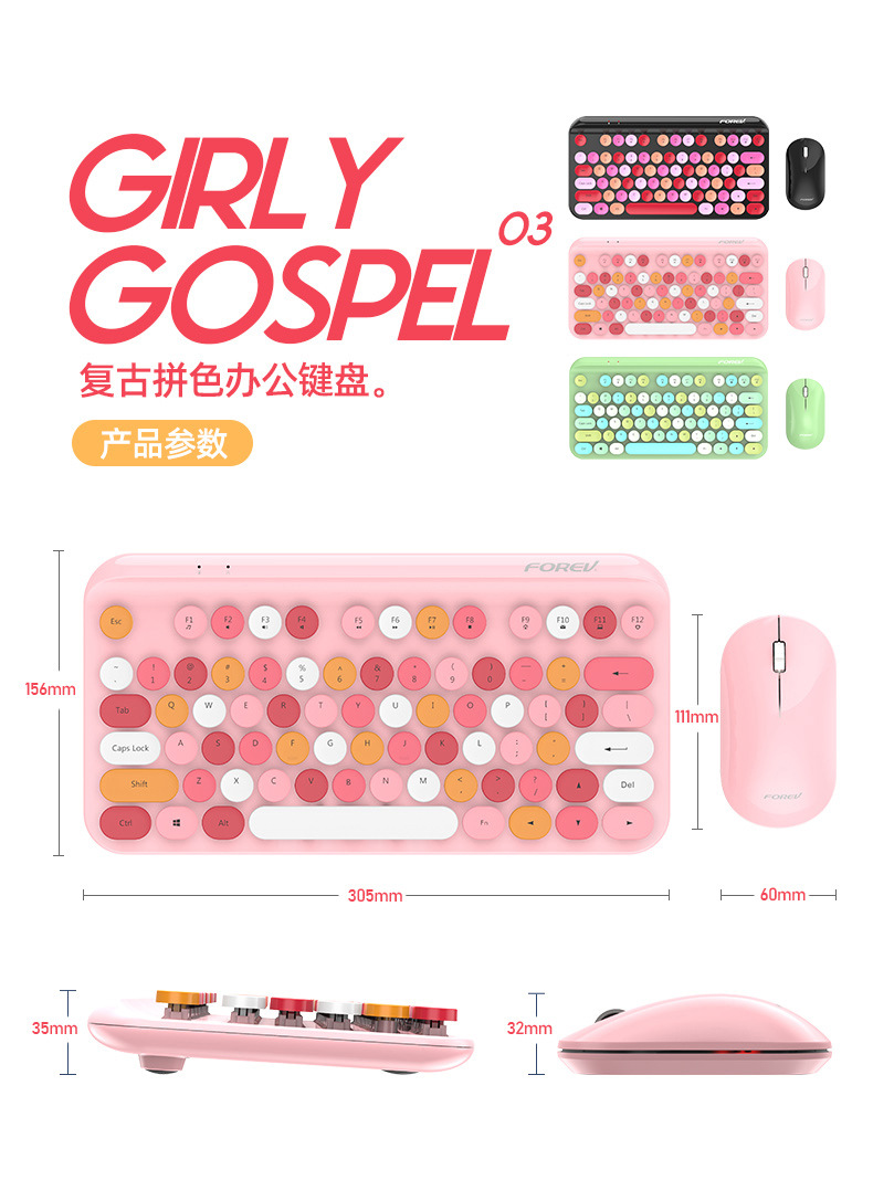 杞冠臻选 | 简创宜品 无线滑鼠键盘套装 复古拼色 圆键帽 可选 3D 鼠标