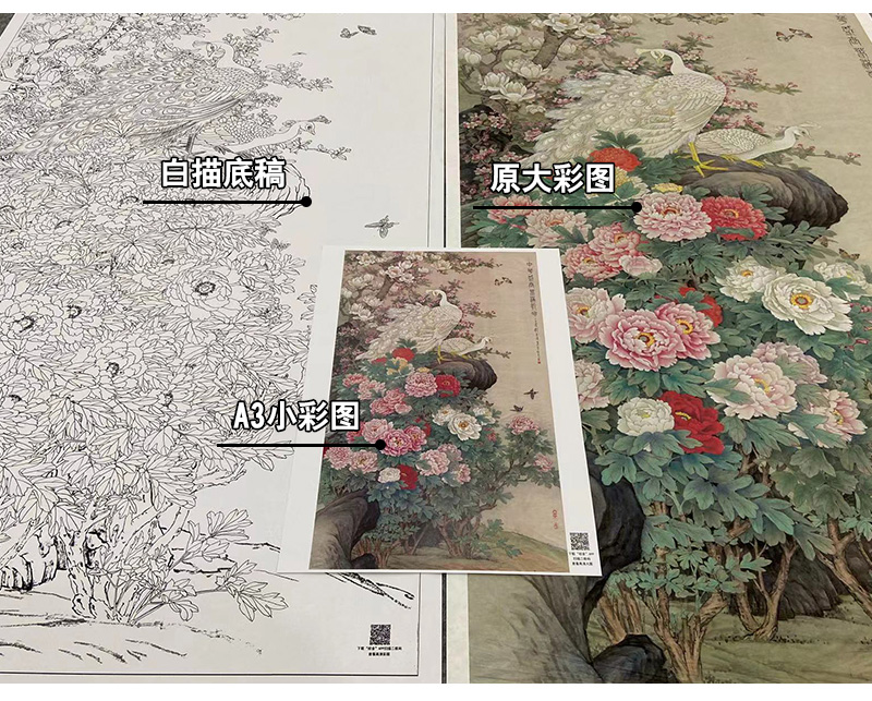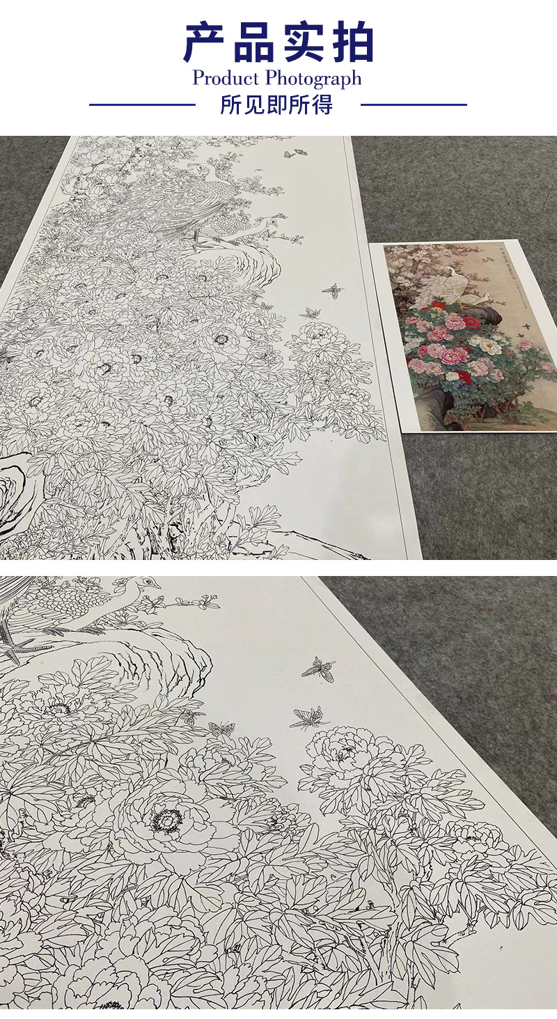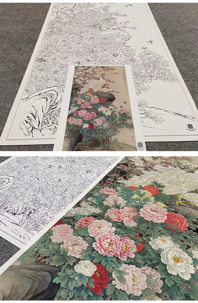 【大彩图】刘菊清工笔画白描底稿《牡丹》临摹勾线花鸟线稿HN20