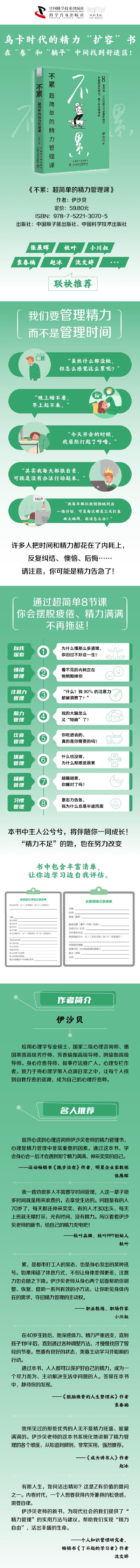 3.心理学专家伊沙贝通过自我探索、情绪管理、注意力管理等8堂课,帮助你掌握科学管理精力的方法,从而迎接活力满满的生活,不再疲惫。