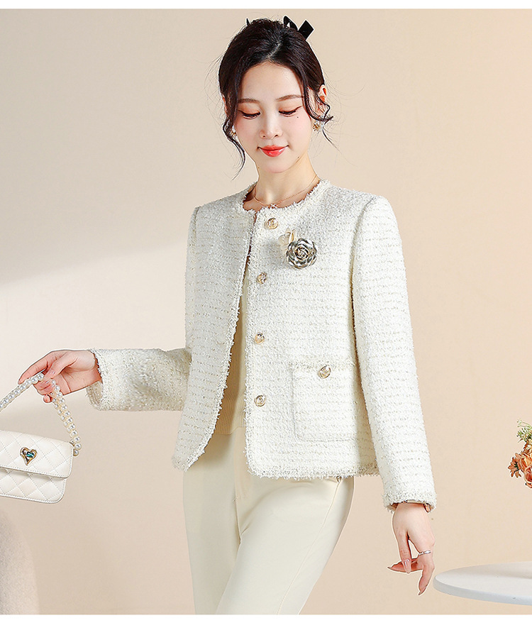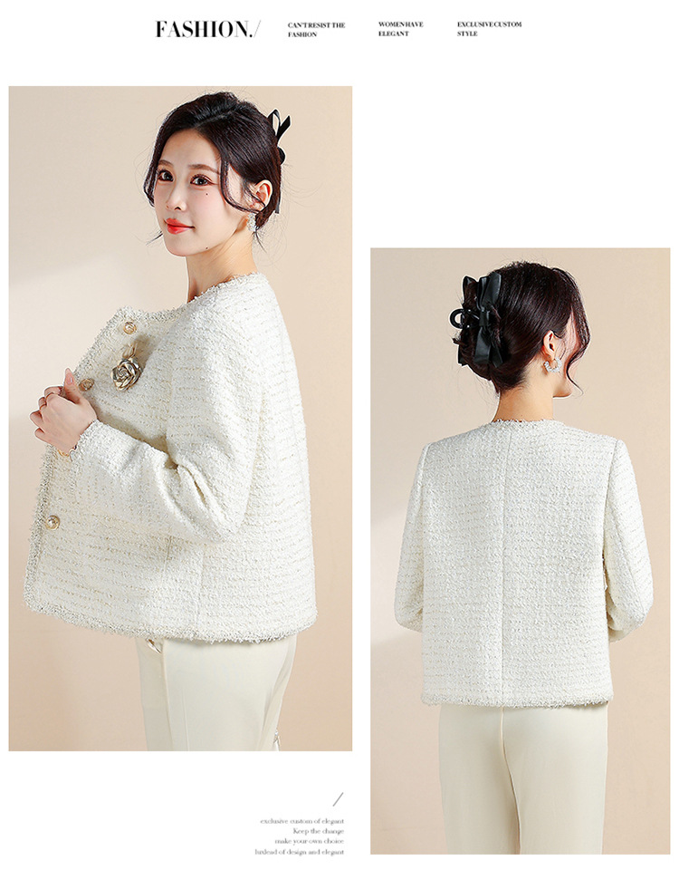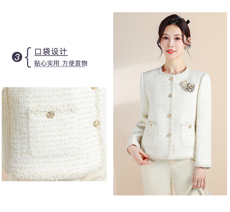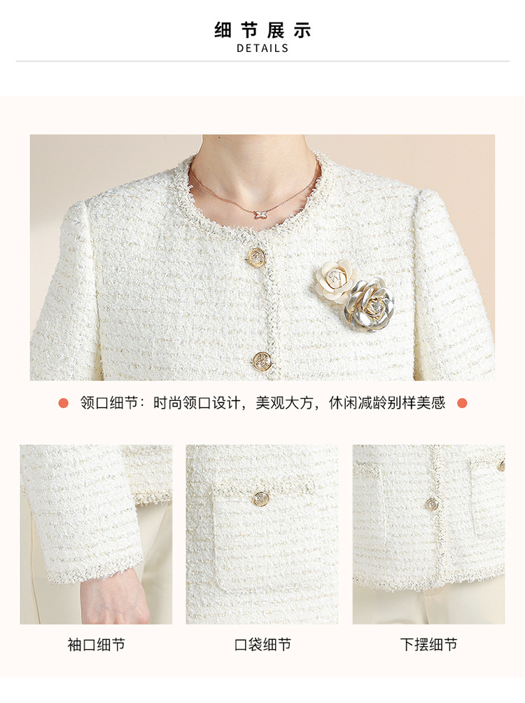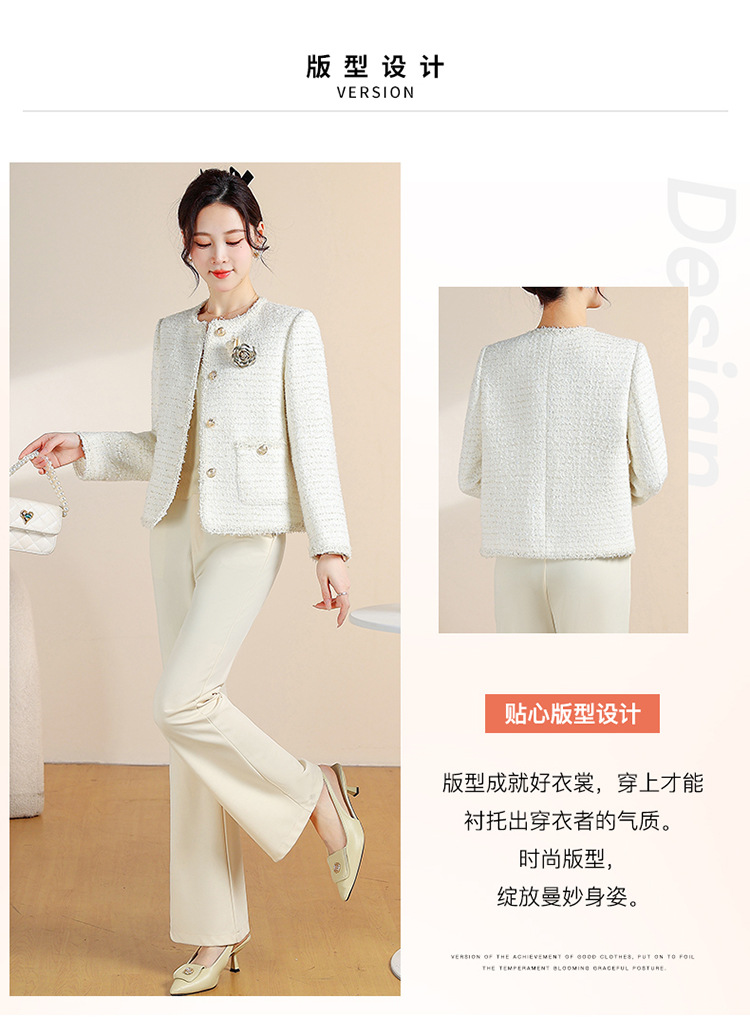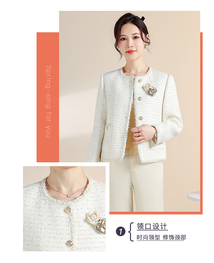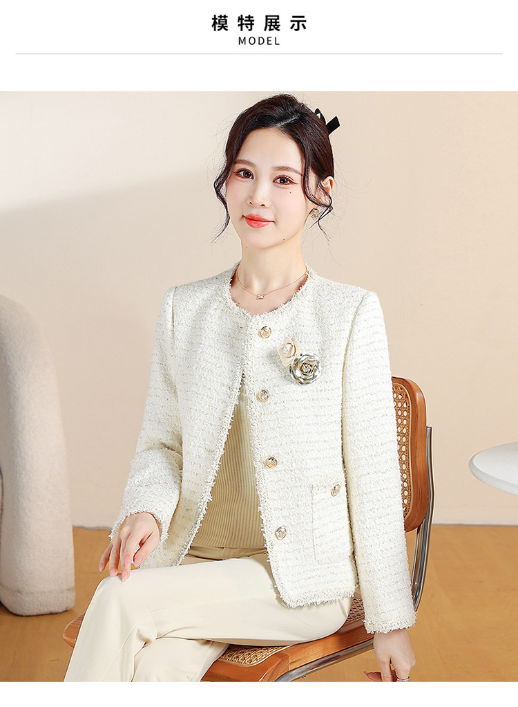 QYM CS25A17-Y时尚小香风外套毛边单排扣休闲上衣