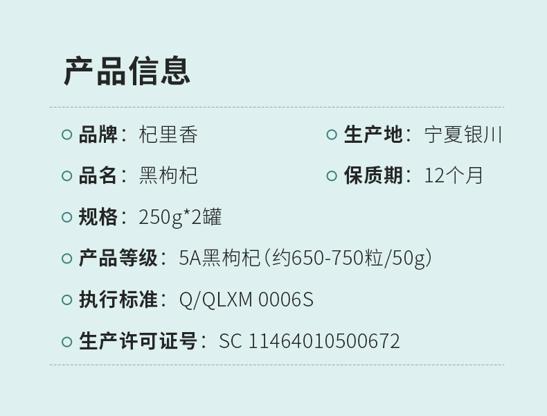 品牌直发【杞里香青海黑枸杞子250g*2罐】 黑枸杞约650粒-750粒/50g 粒粒精挑 颗颗饱满