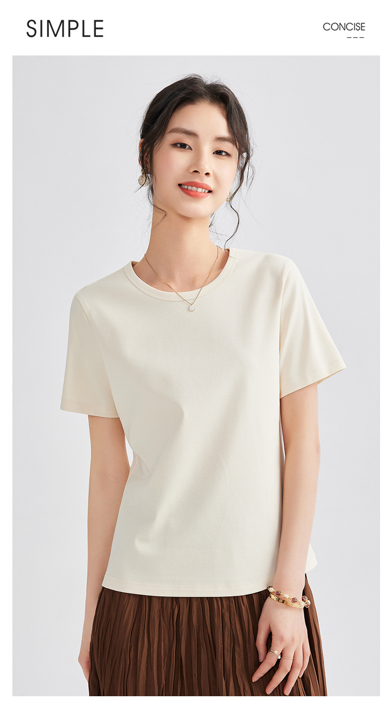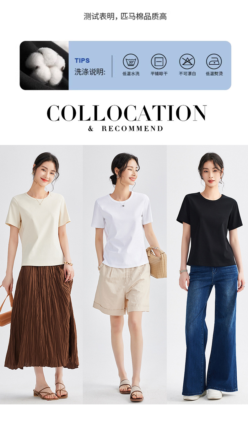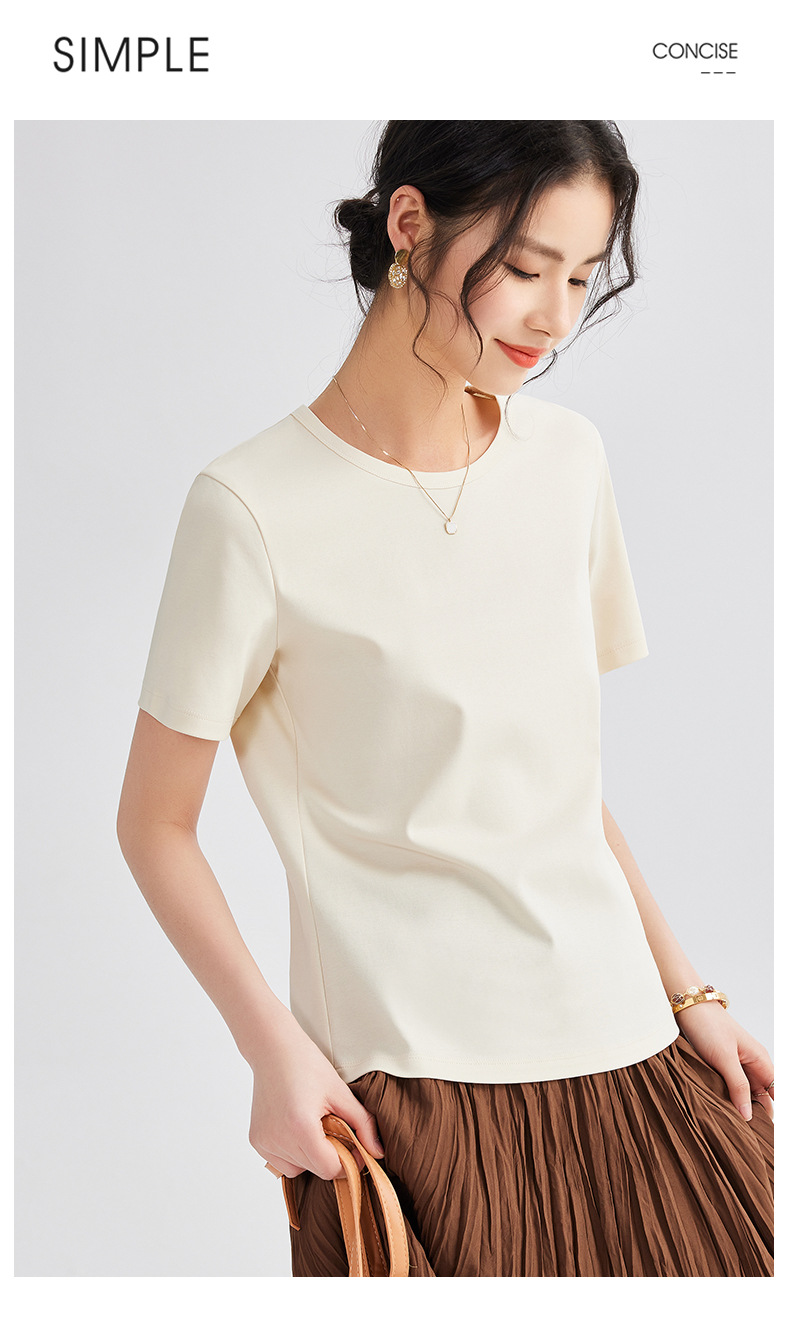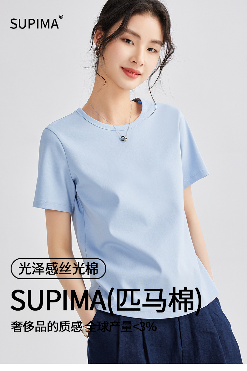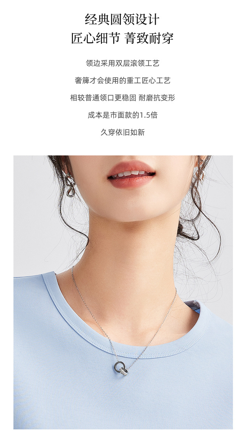 「自j」全新升级【铂金会员109/天猫149/差价40】(95207)洛诗琳夏季丝光棉T恤女2025夏季新款圆领纯色正肩显瘦上衣