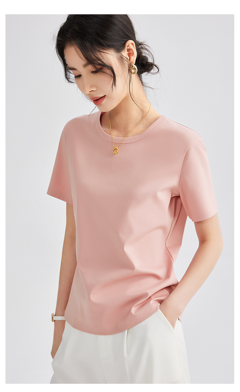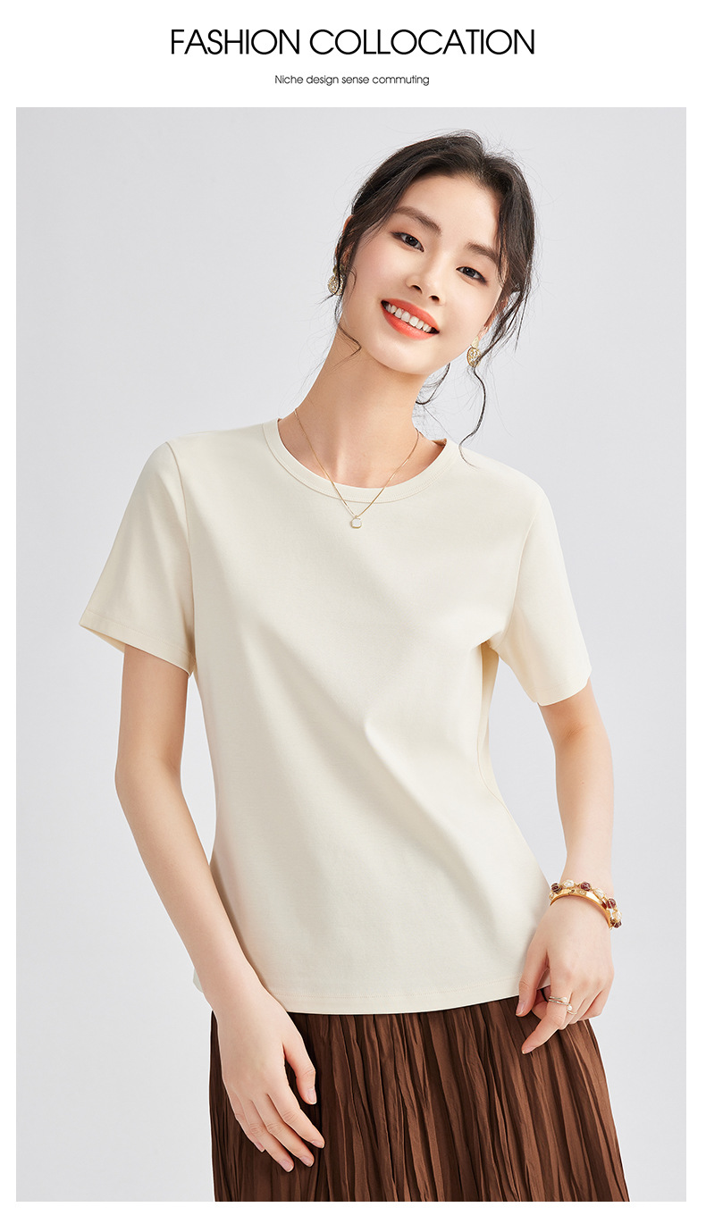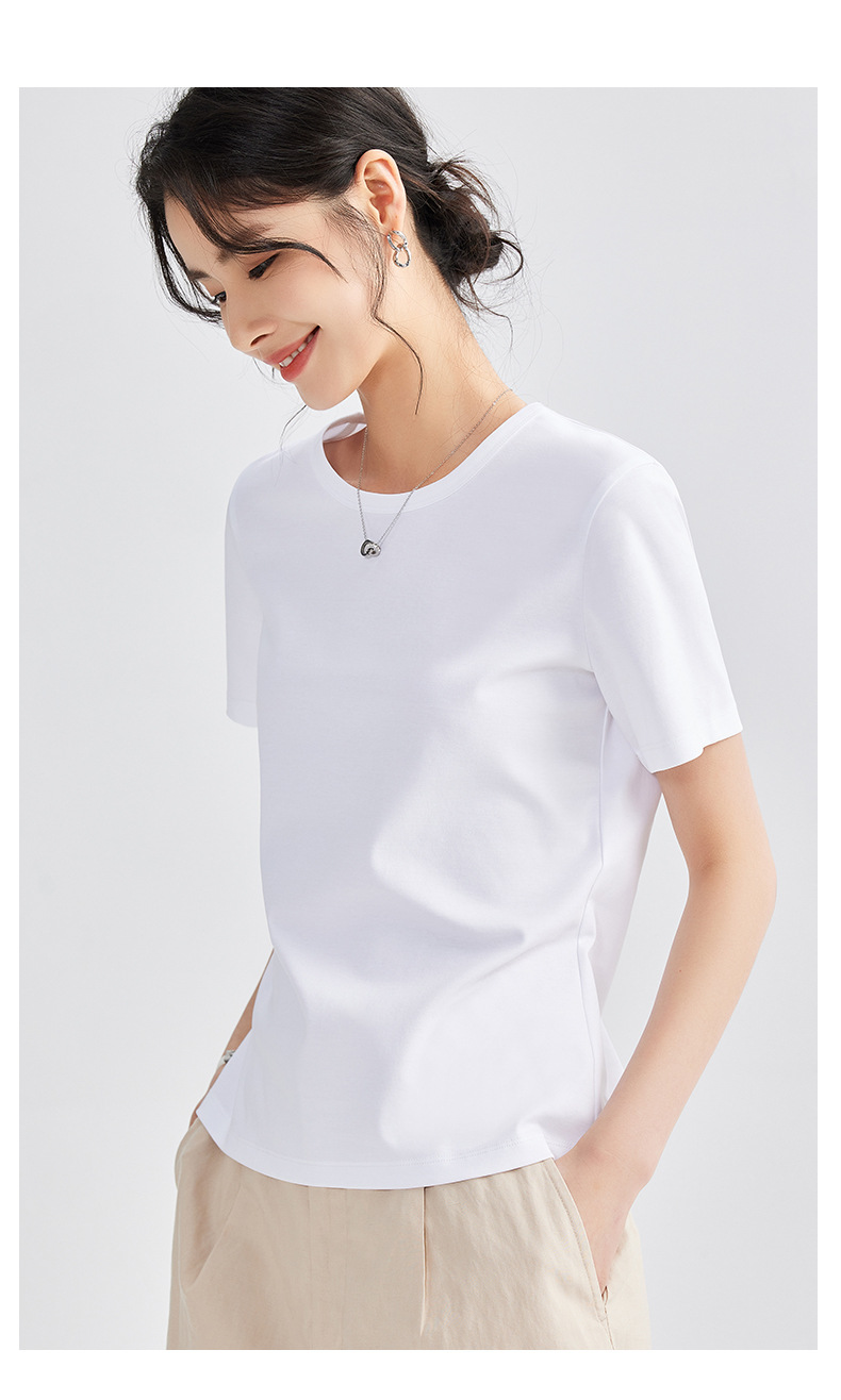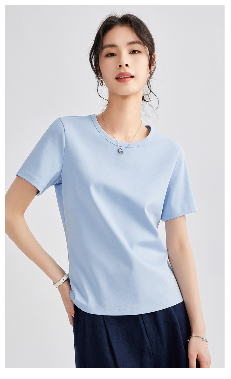「自j」全新升级【铂金会员109/天猫149/差价40】(95207)洛诗琳夏季丝光棉T恤女2025夏季新款圆领纯色正肩显瘦上衣