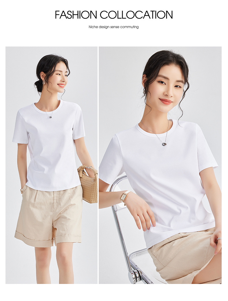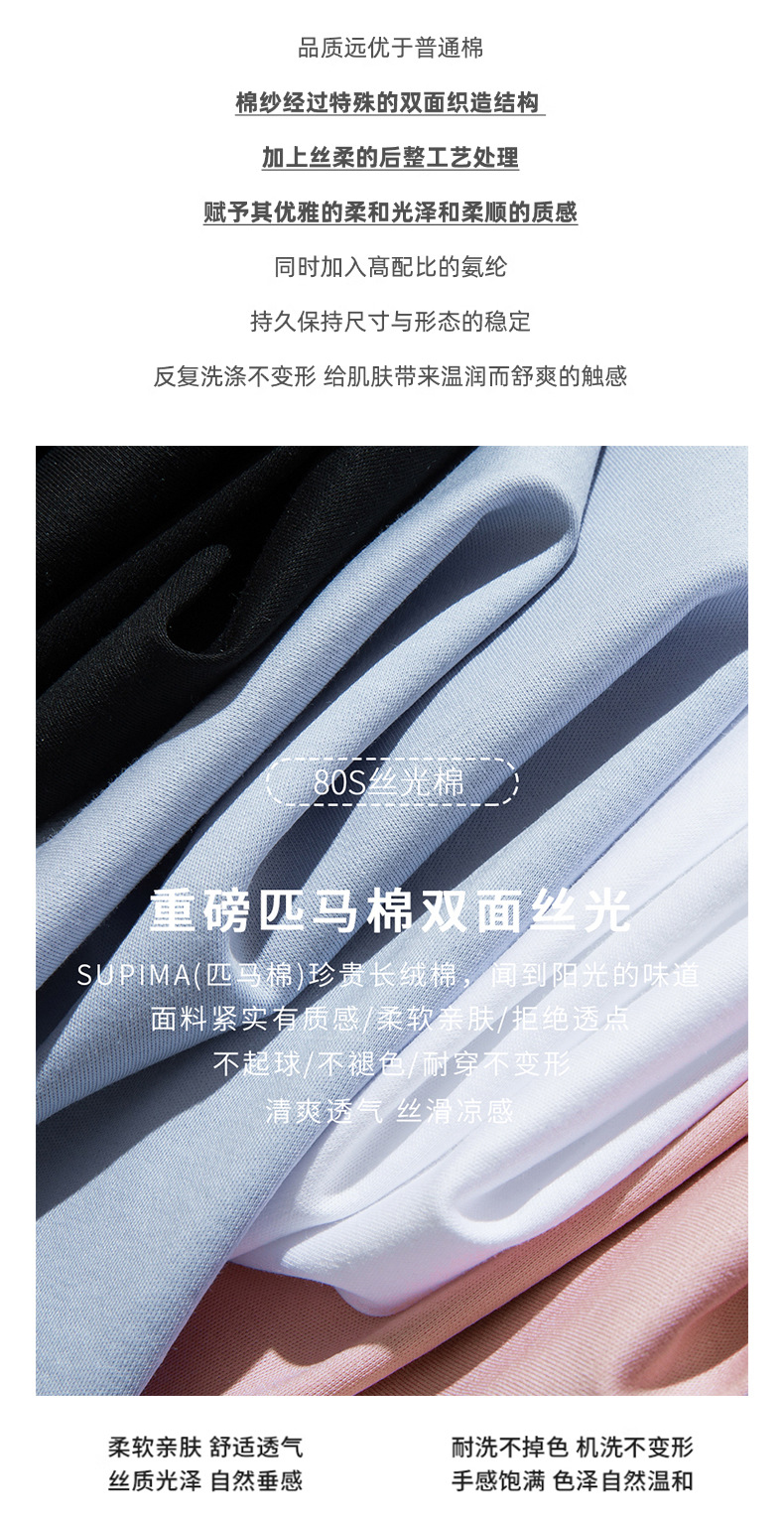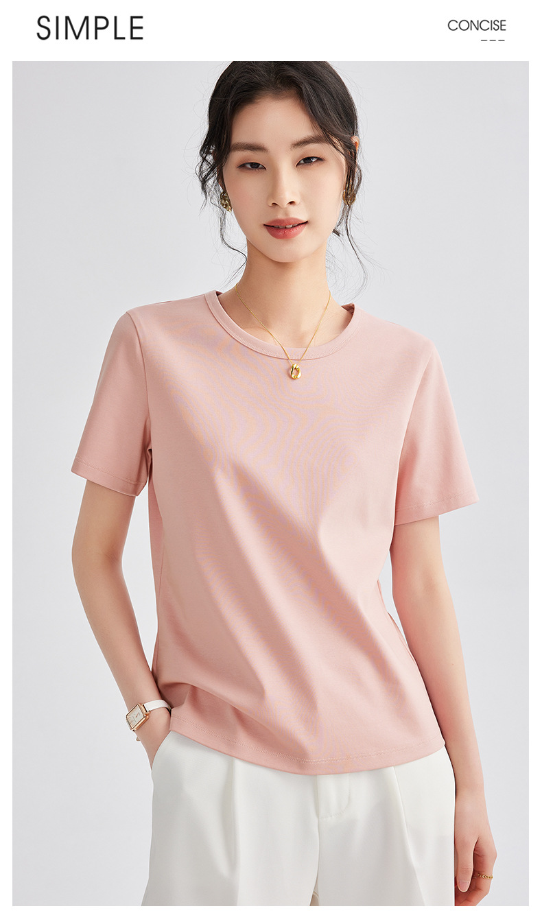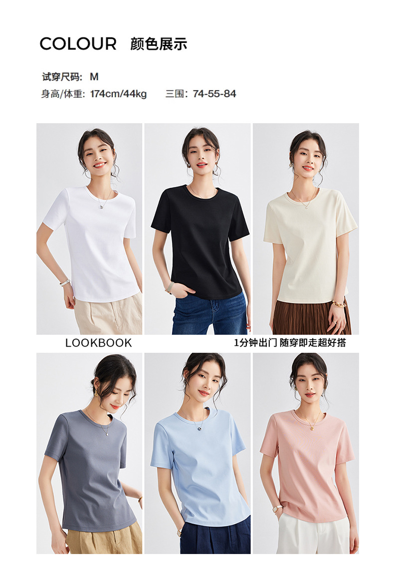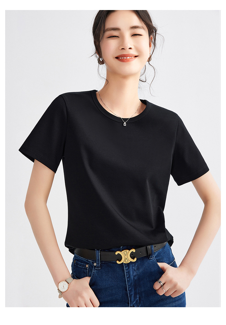 「自j」全新升级【铂金会员109/天猫149/差价40】(95207)洛诗琳夏季丝光棉T恤女2025夏季新款圆领纯色正肩显瘦上衣