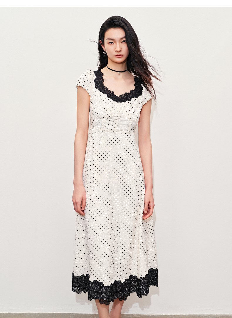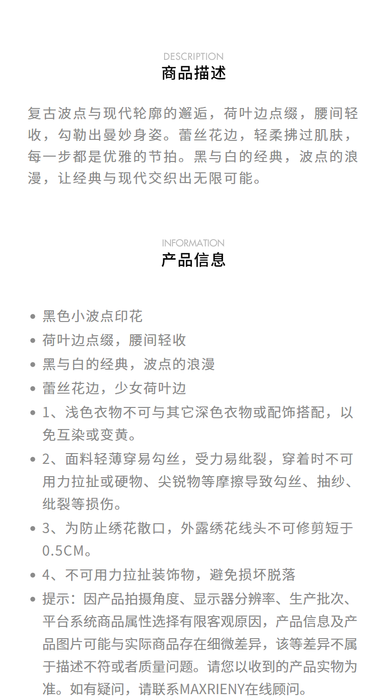 【黑白优雅主义-商场同款】MAXRIENY法式复古风韵收腰连衣裙(货号:MC85DR052)