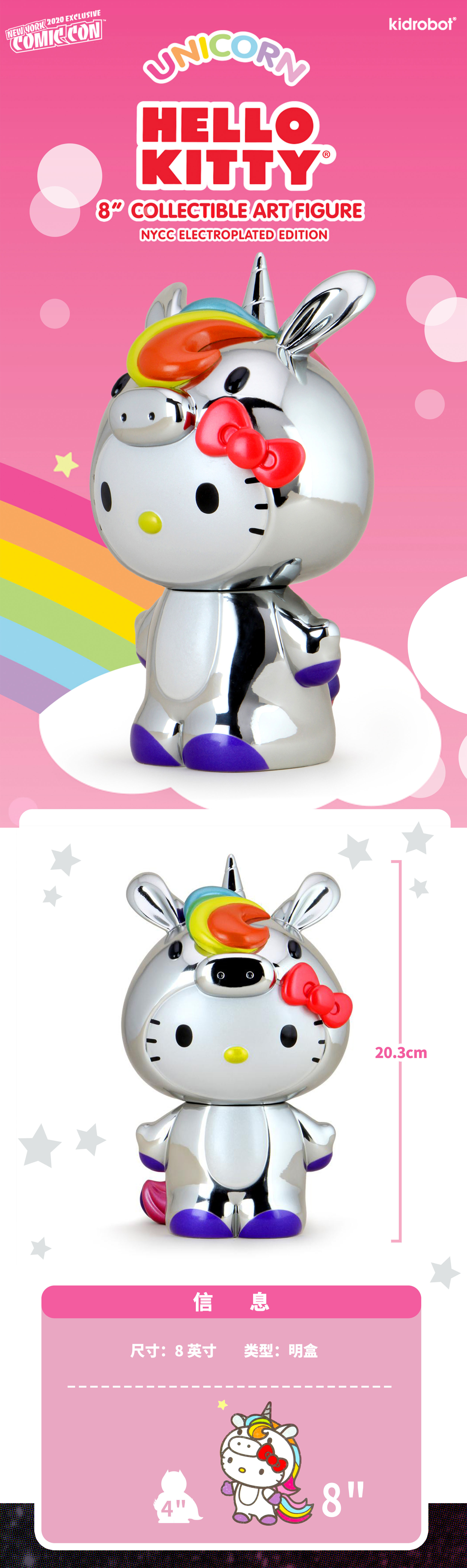 现货 Kidrobot 凯蒂猫 Hello Kitty Unicorn 8" Figure Electroplated 金属限定色版 潮流玩具 摆件 可爱