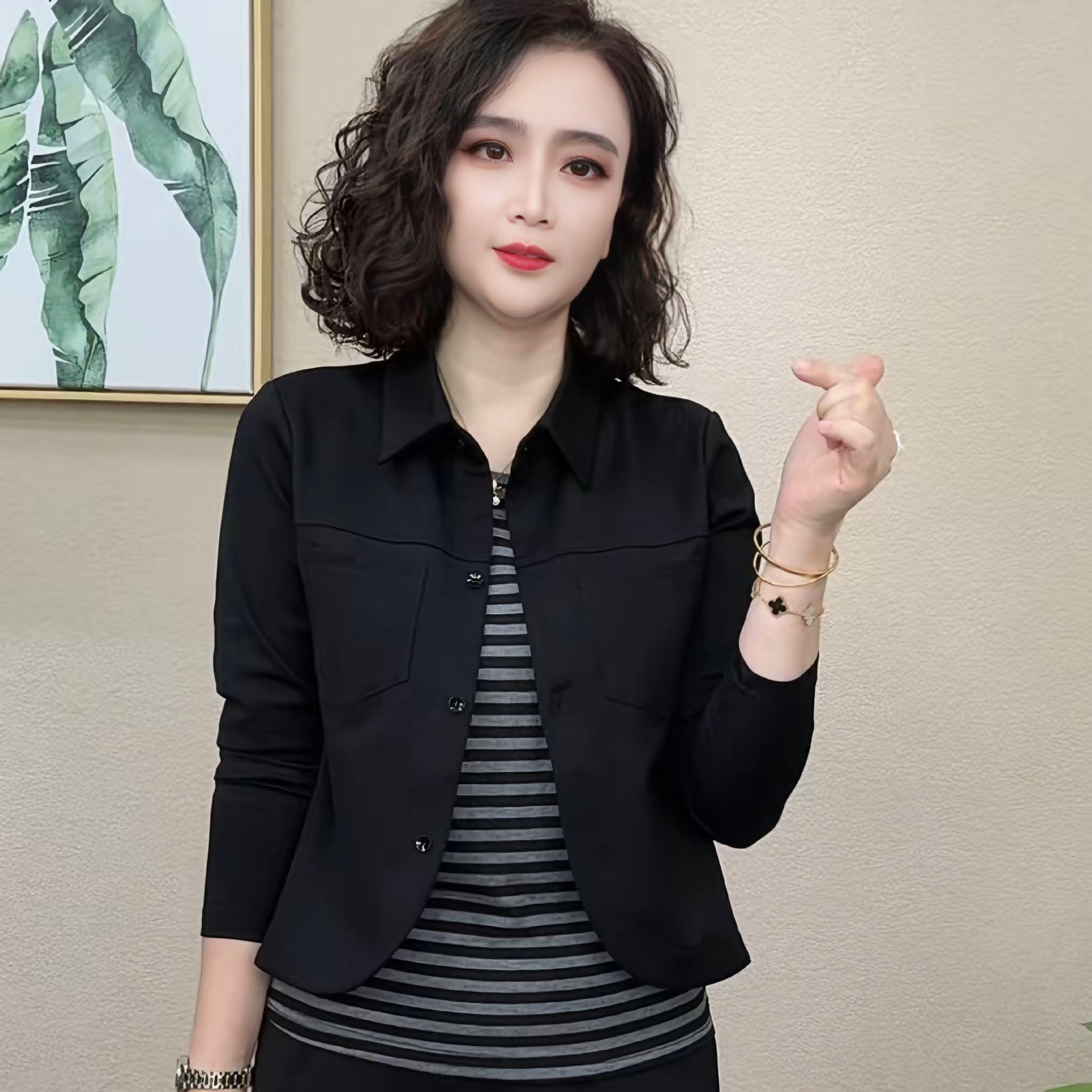 BD1318-257682025春秋季新款时尚假两件长袖衬衫外套上衣妈妈装宽松减龄小衫女
