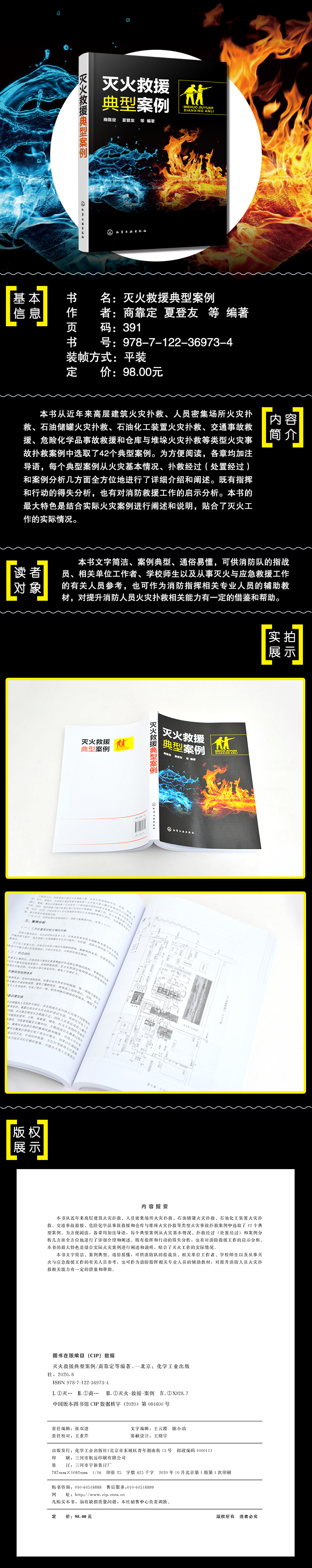 本书从近年来高层建筑火灾扑救、人员密集场所火灾扑救、石油储罐火灾扑救、石油化工装置火灾扑救、交通事故救援、危险化学品事故救援和仓库与堆垛火灾扑救等类型火灾事故扑救案例中选取了42个典型案例。为方便阅读,各章均加注导语,每个典型案例从火灾基本情况、扑救经过(处置经过)和案例分析几方面全方位地进行了详细介绍和阐述。既有指挥和行动的得失分析,也有对消防救援工作的启示分析。本书的大特色是结合实际火灾案例进行阐述和说明,贴合了灭火工作的实际情况。 本书文字简洁、案例典型、通俗易懂,可供消防队的指战员、相关单位工作者、学校师生以及从事灭火与应急救援工作的有关人员参考,也可作为消防指挥相关专业人员的辅助教材,对提升消防人员火灾扑救相关能力有一定的借鉴和帮助。