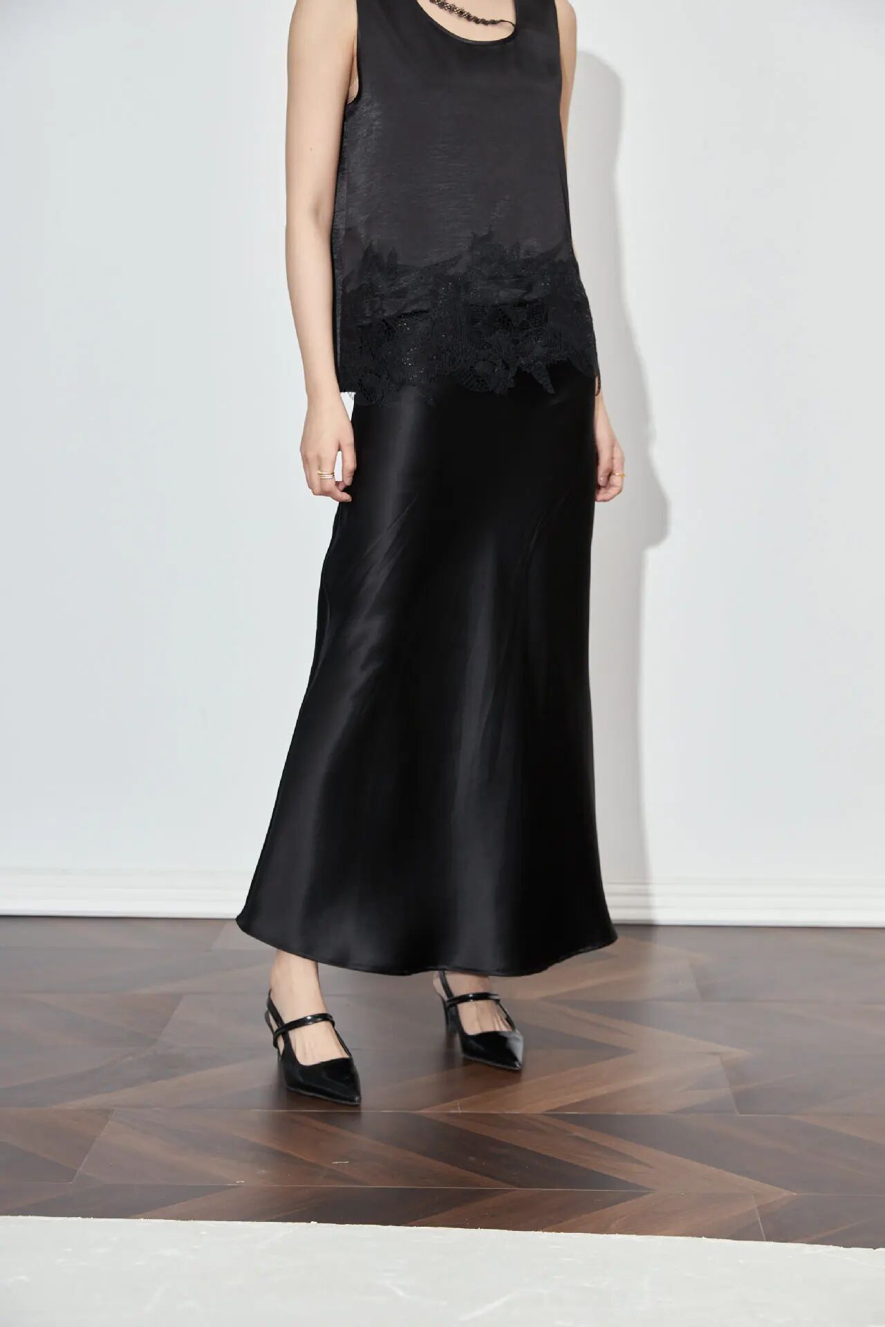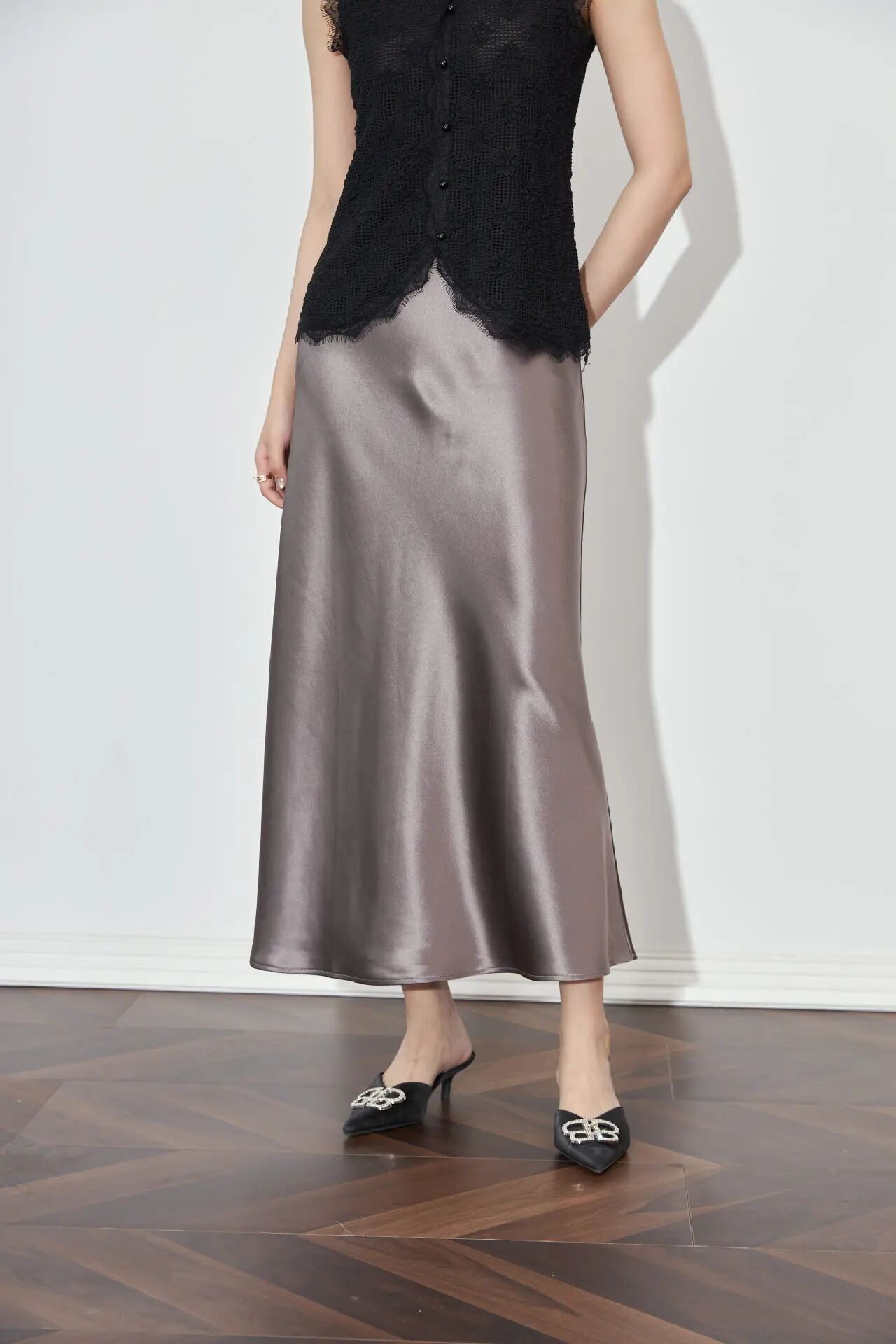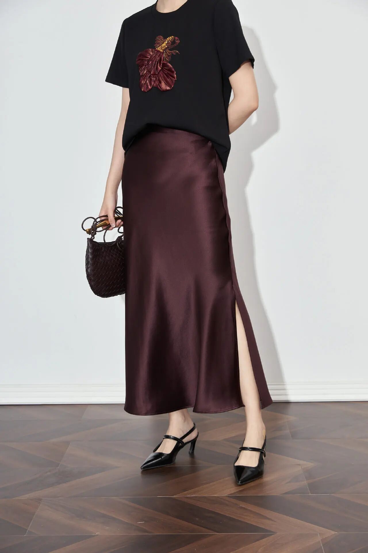 【高货wl】全新升级【铂金会员257/天猫349/差价92】(11354) 洛诗琳轻奢醋酸缎面鎏光垂感松紧腰下摆开衩A字鱼尾半身裙