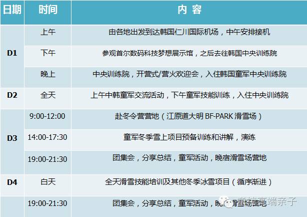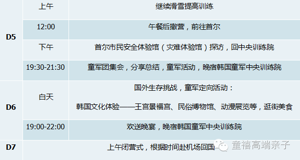 费用含:在韩国境内所有食宿费、包车交通费、滑雪训练费、文化体验景点门票费、活动组织费、纪念物品费、韩国境内保险等。