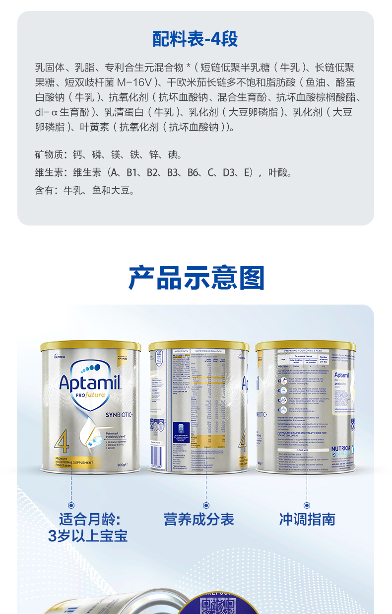 澳洲爱他美白金版婴幼儿奶粉4段 900g 跨境购