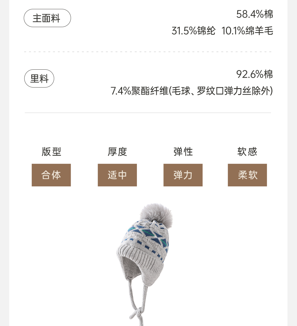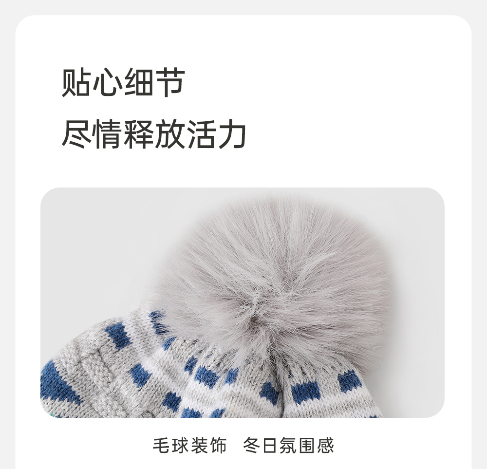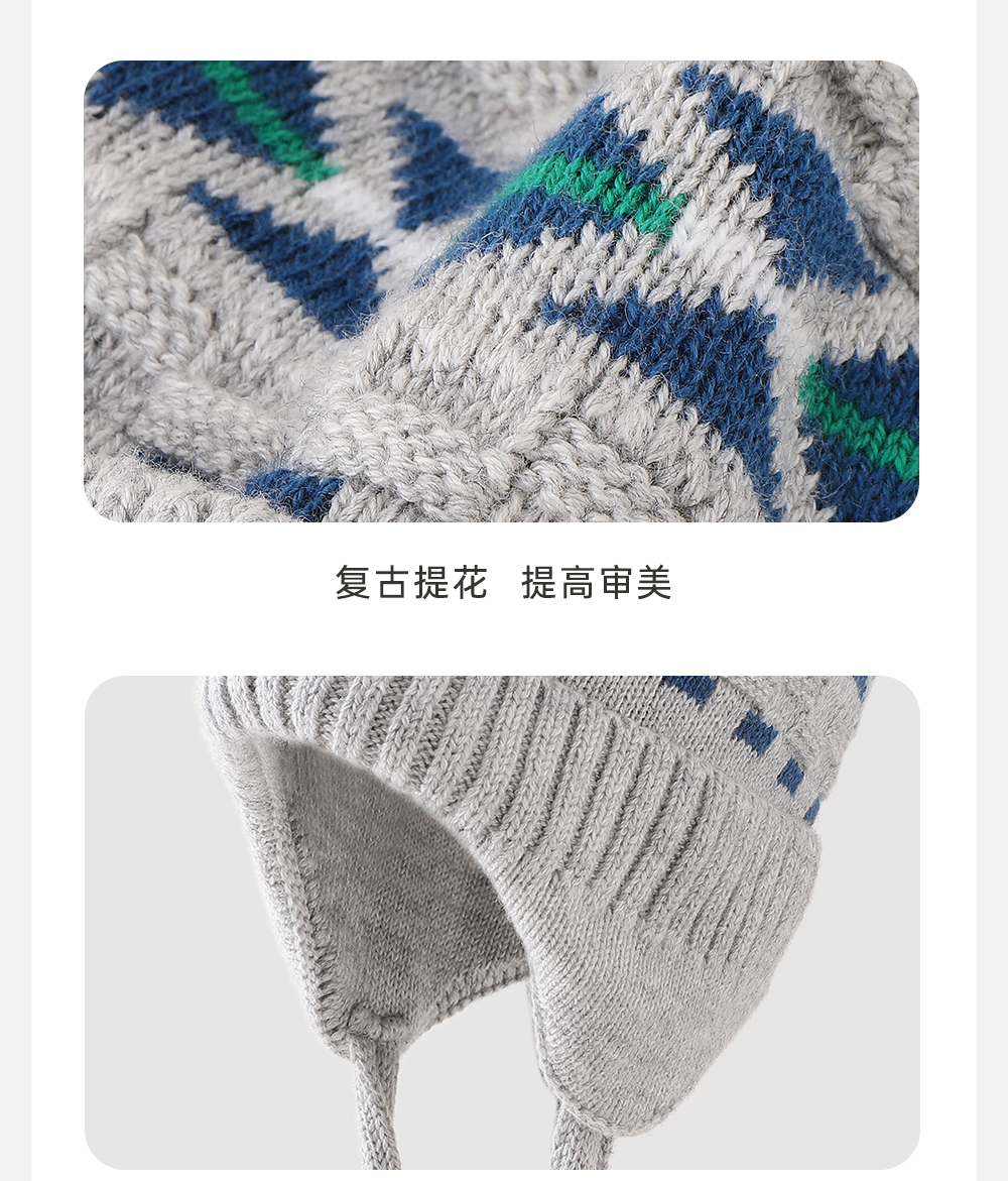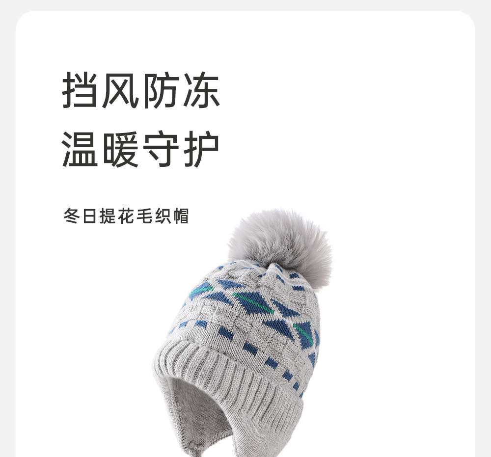 【商场同款】英氏儿童帽子毛织帽冬季保暖男童新款绵羊毛帽子