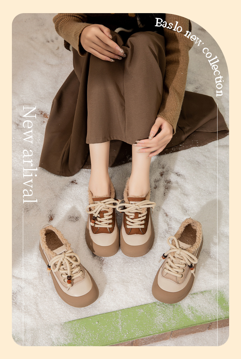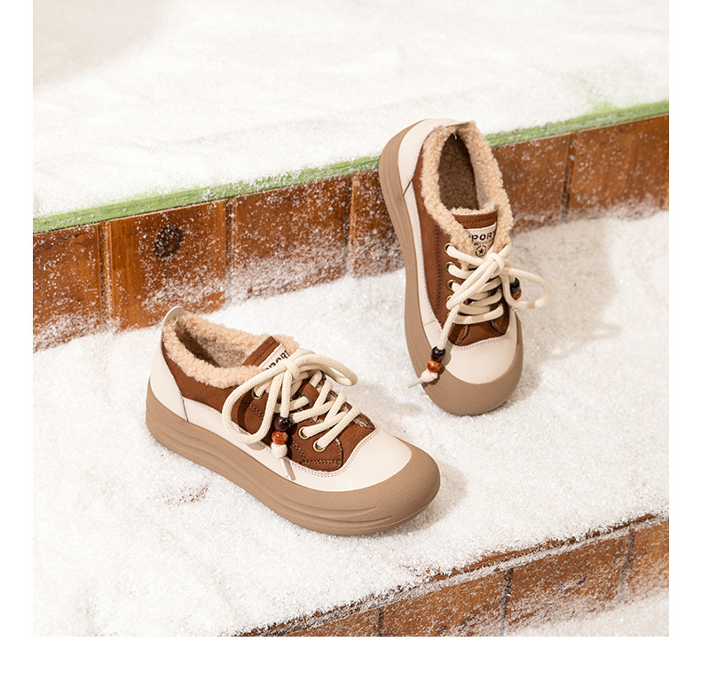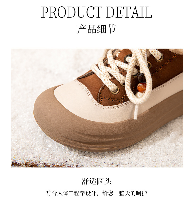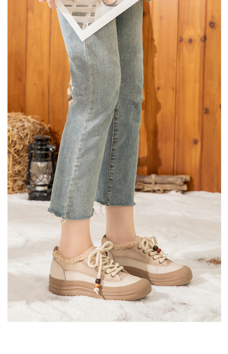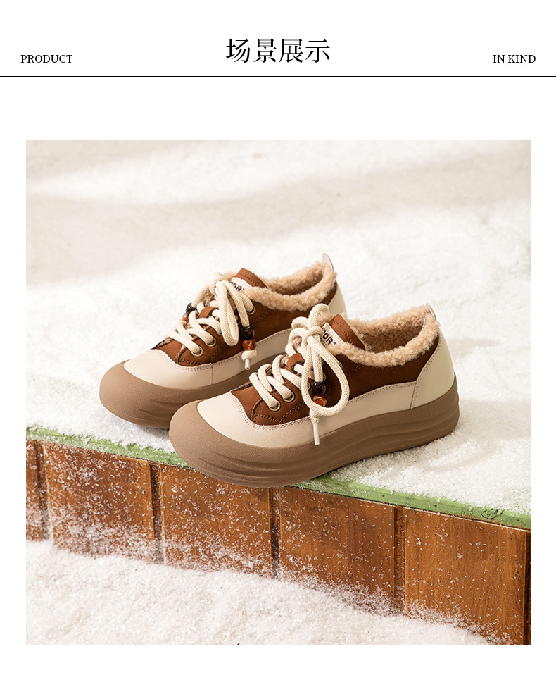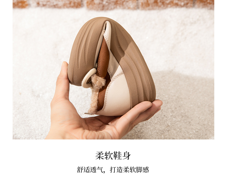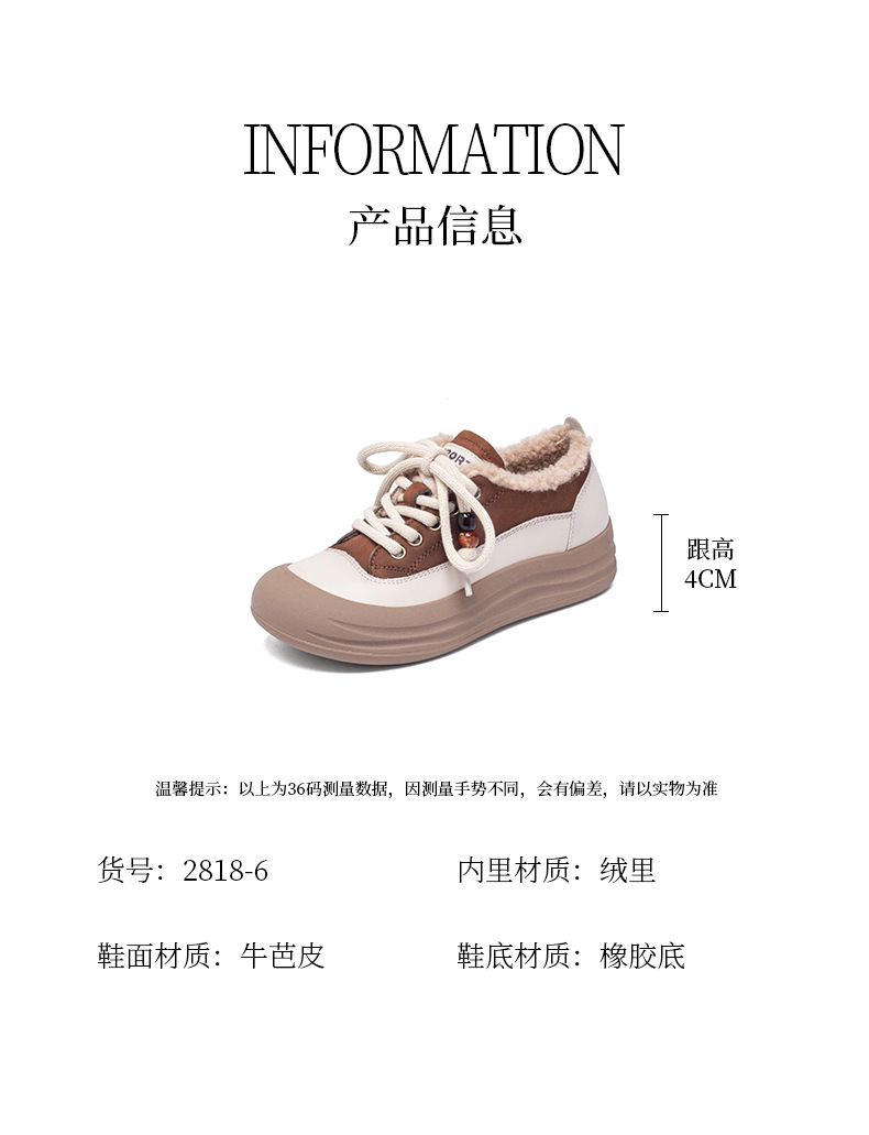 复古真皮鞋子加绒保暖平跟软底,圆头休闲女鞋系带毛毛单鞋MLD-2818-6