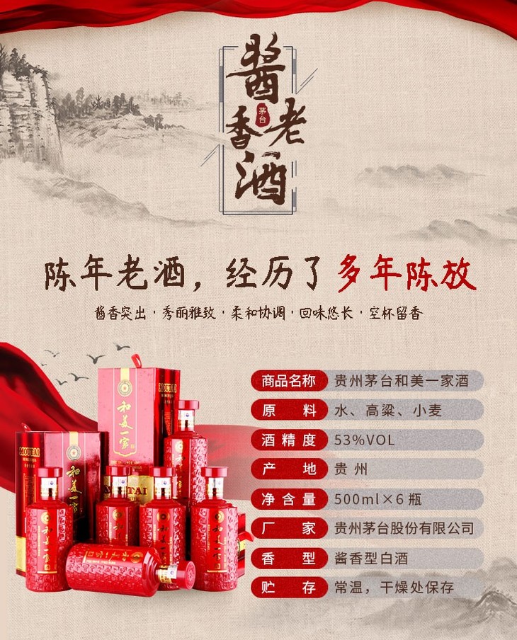 【推荐】2013年 贵州茅台酒股份有限公司出品 53度 和美一家酒 酱香型白酒 老酒 500ml*6瓶整箱装年