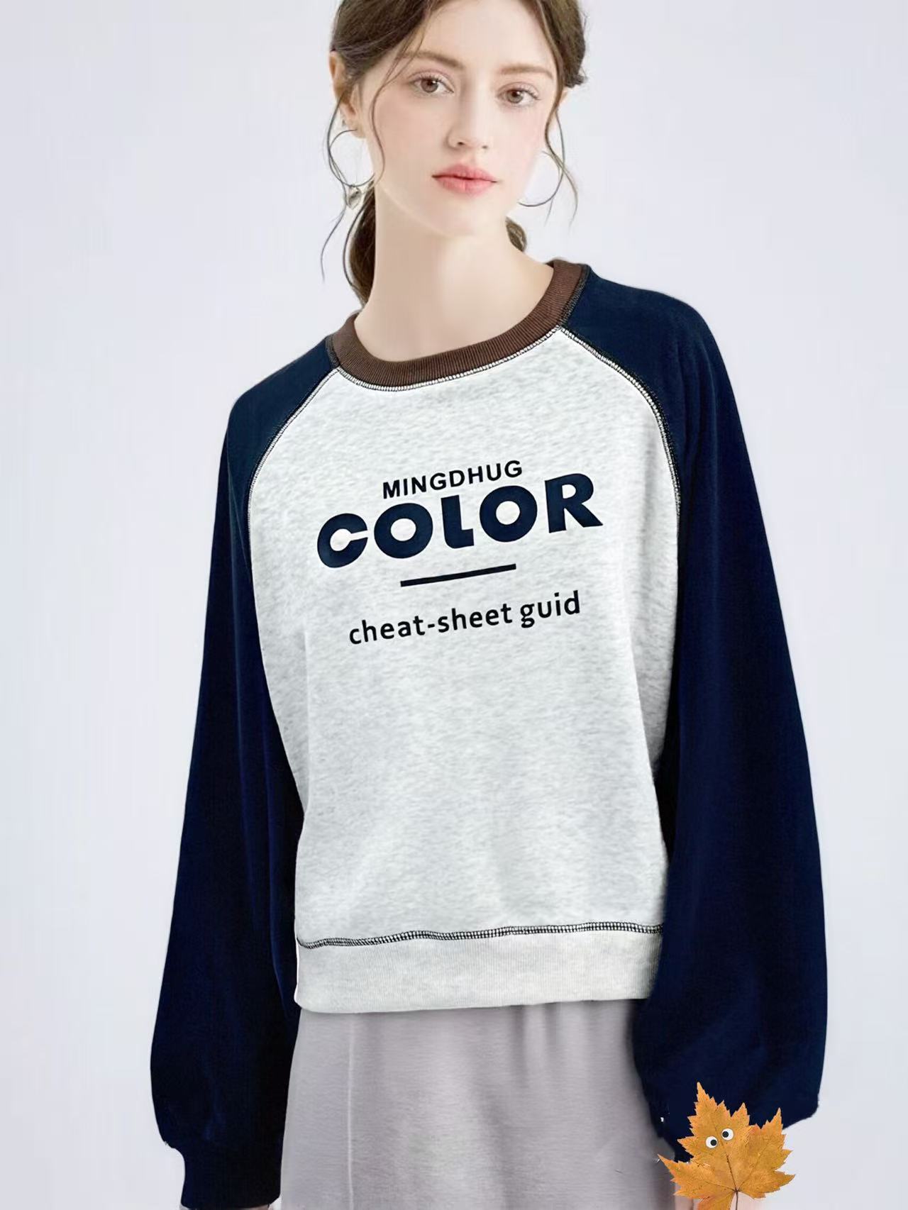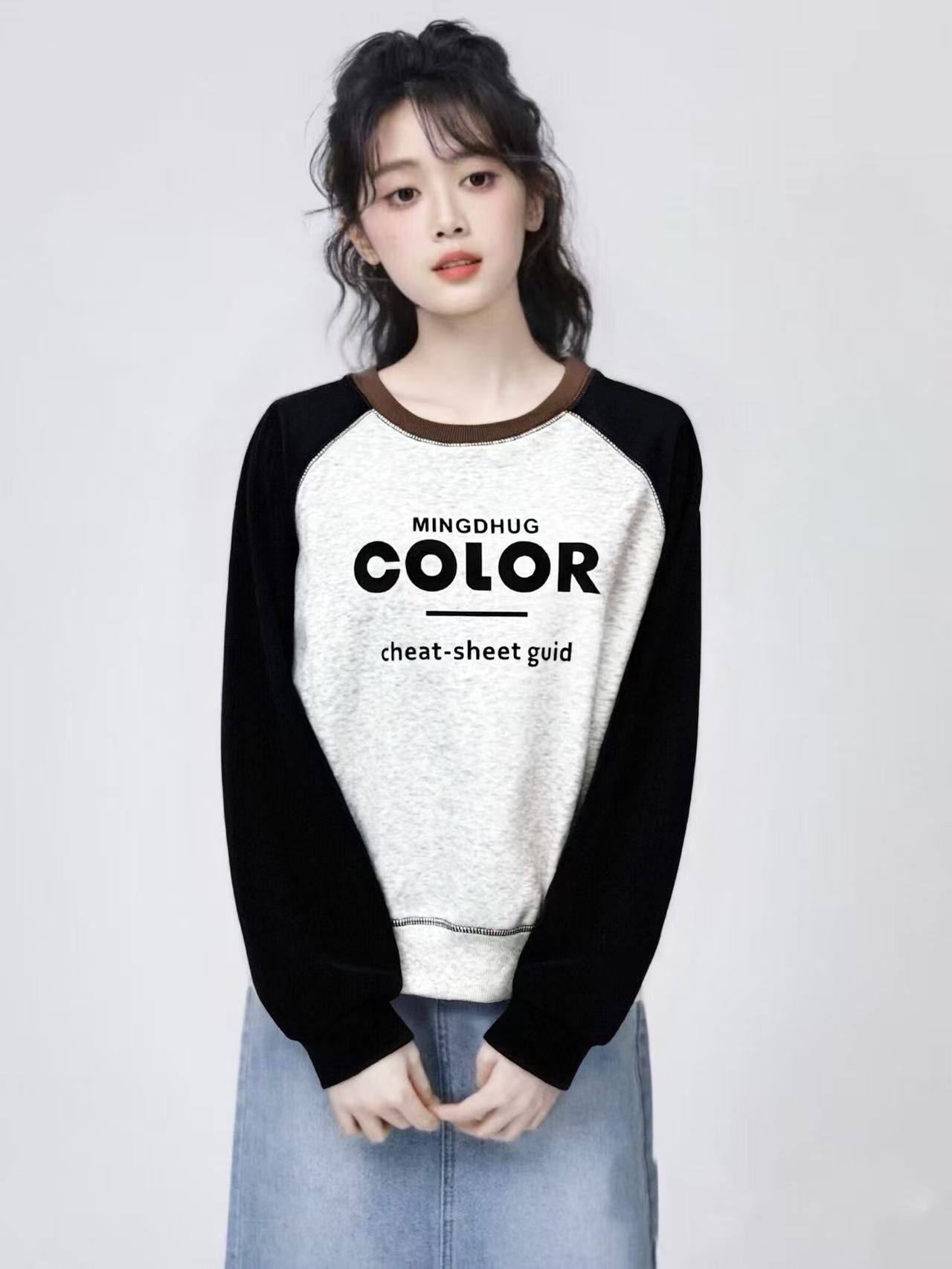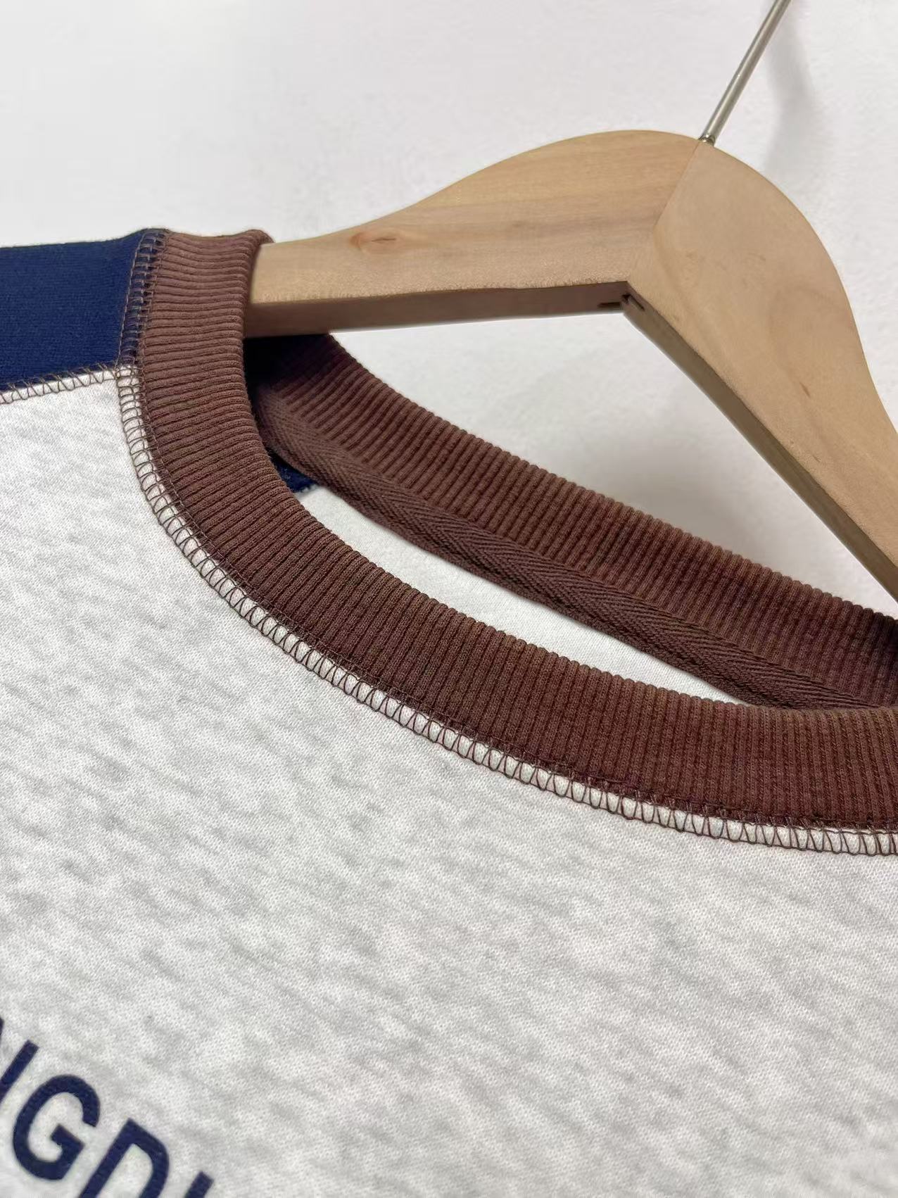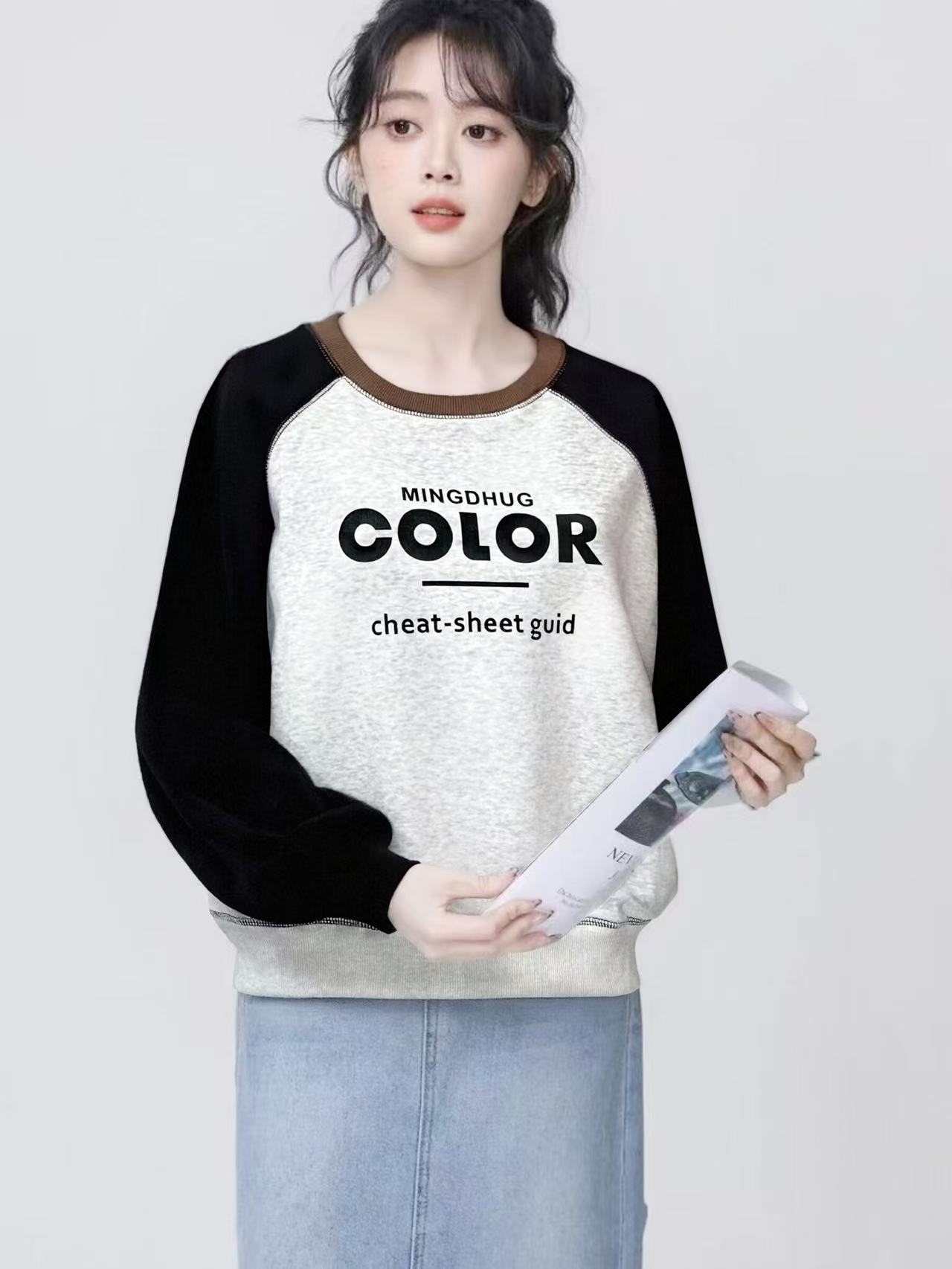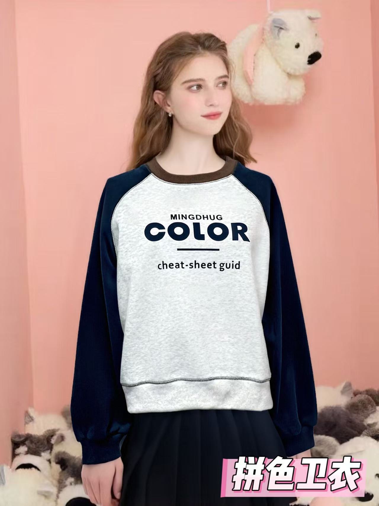【工艺系列卫衣】拼色款~95%棉明线拼色字母休闲卫衣-喜出