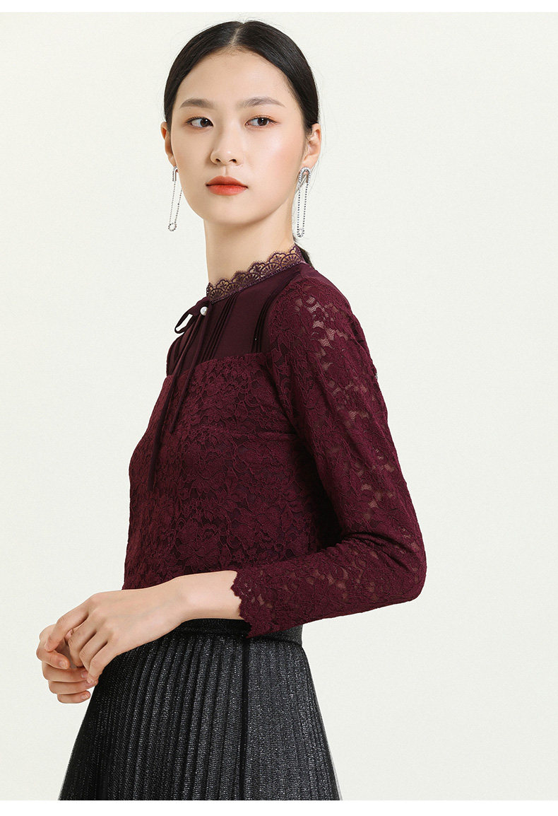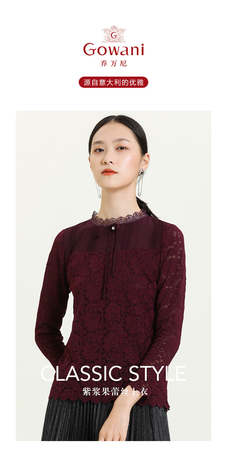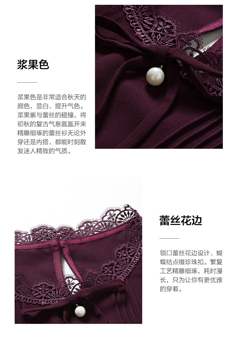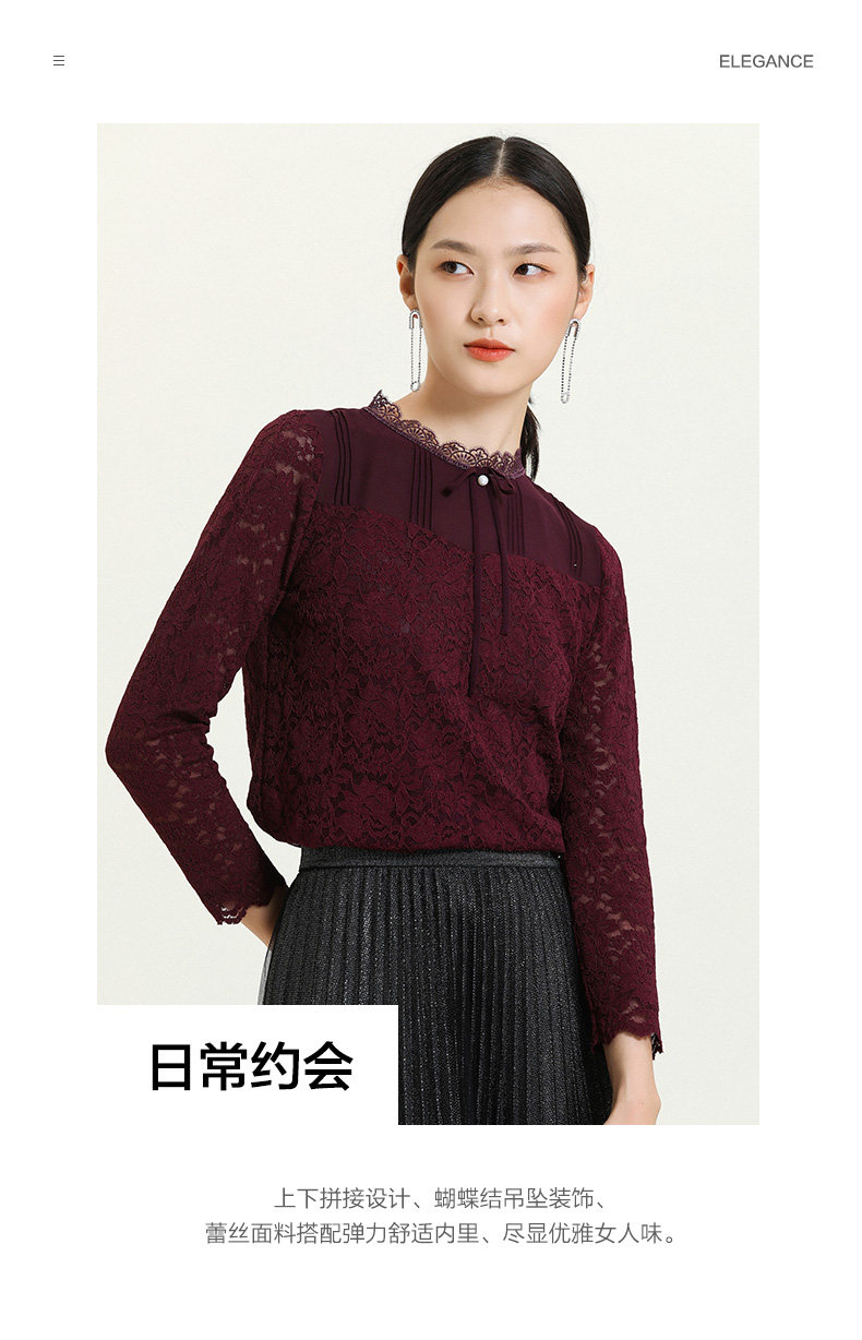 乔万尼早秋上衣女拼接设计蝴蝶结吊坠重工蕾丝气质优雅衬衣ES3C517