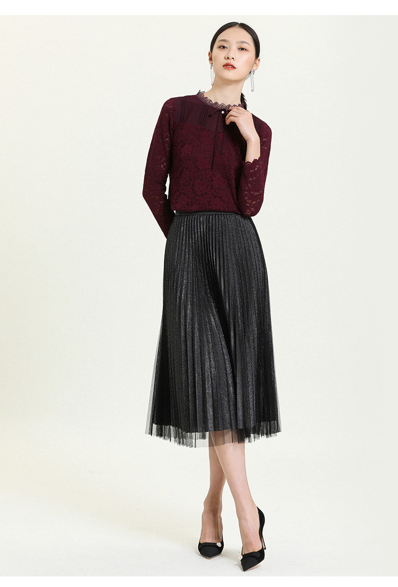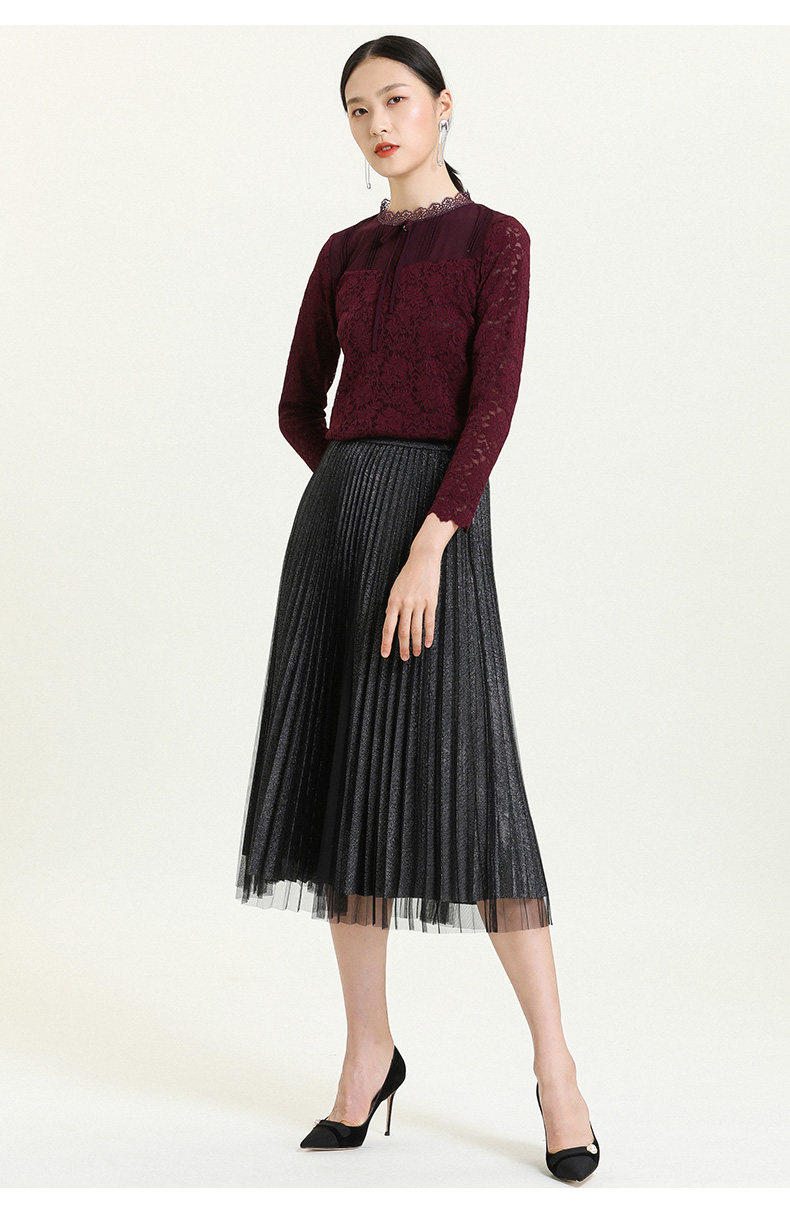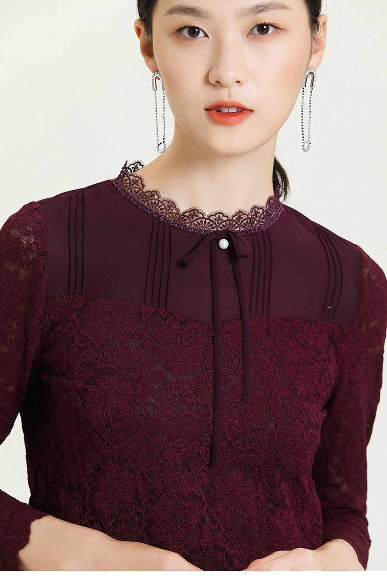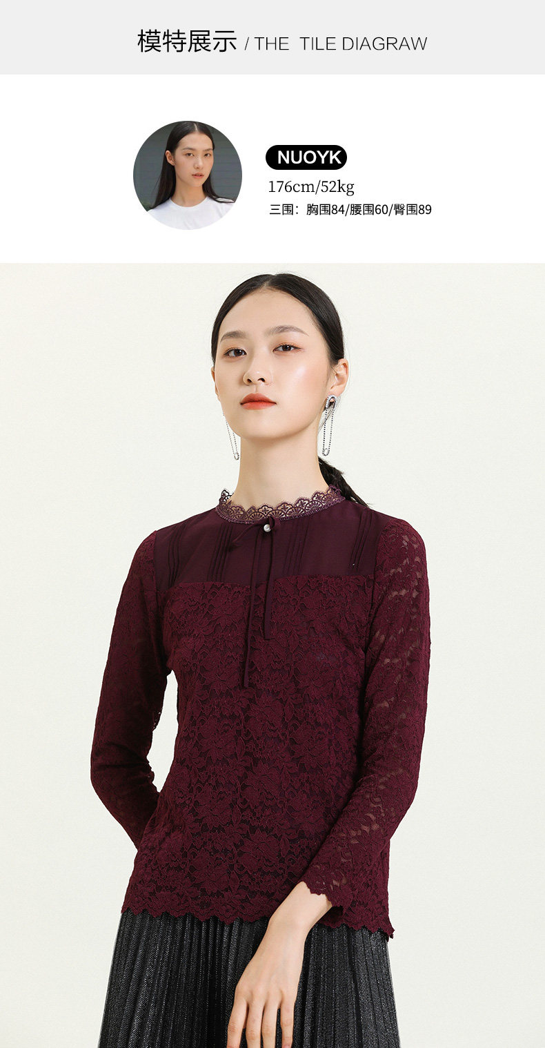 乔万尼早秋上衣女拼接设计蝴蝶结吊坠重工蕾丝气质优雅衬衣ES3C517