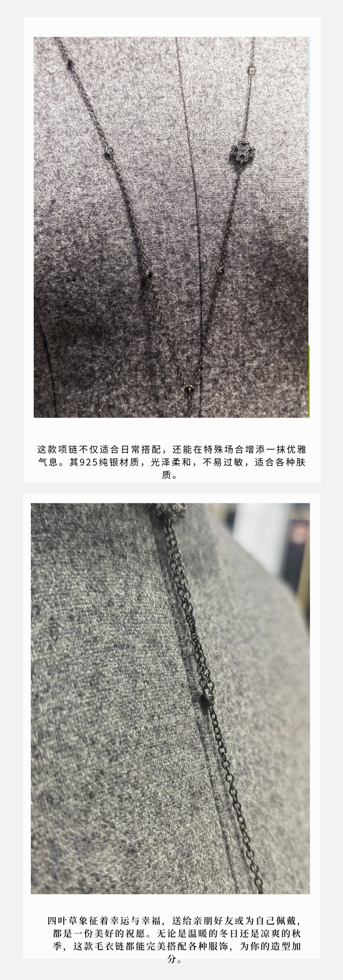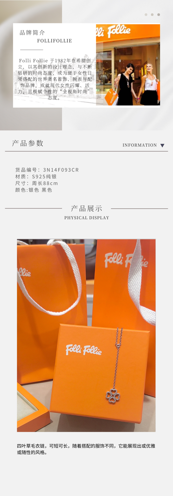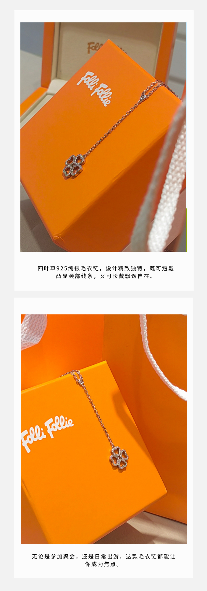 Folli Follie · 长款四叶草毛衣链•925纯银•可短可长•优雅随性