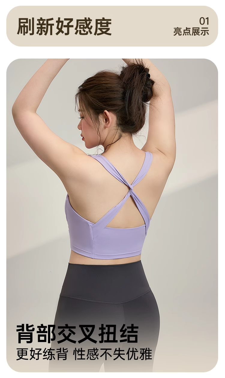 跃牌(呗咪纷纷系列)大码运动背心长款舒适百搭一体杯防震瑜伽内衣美背健身WX23003