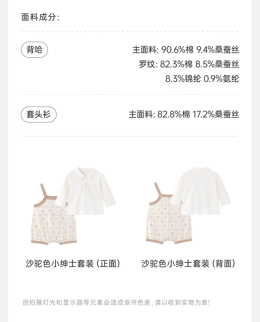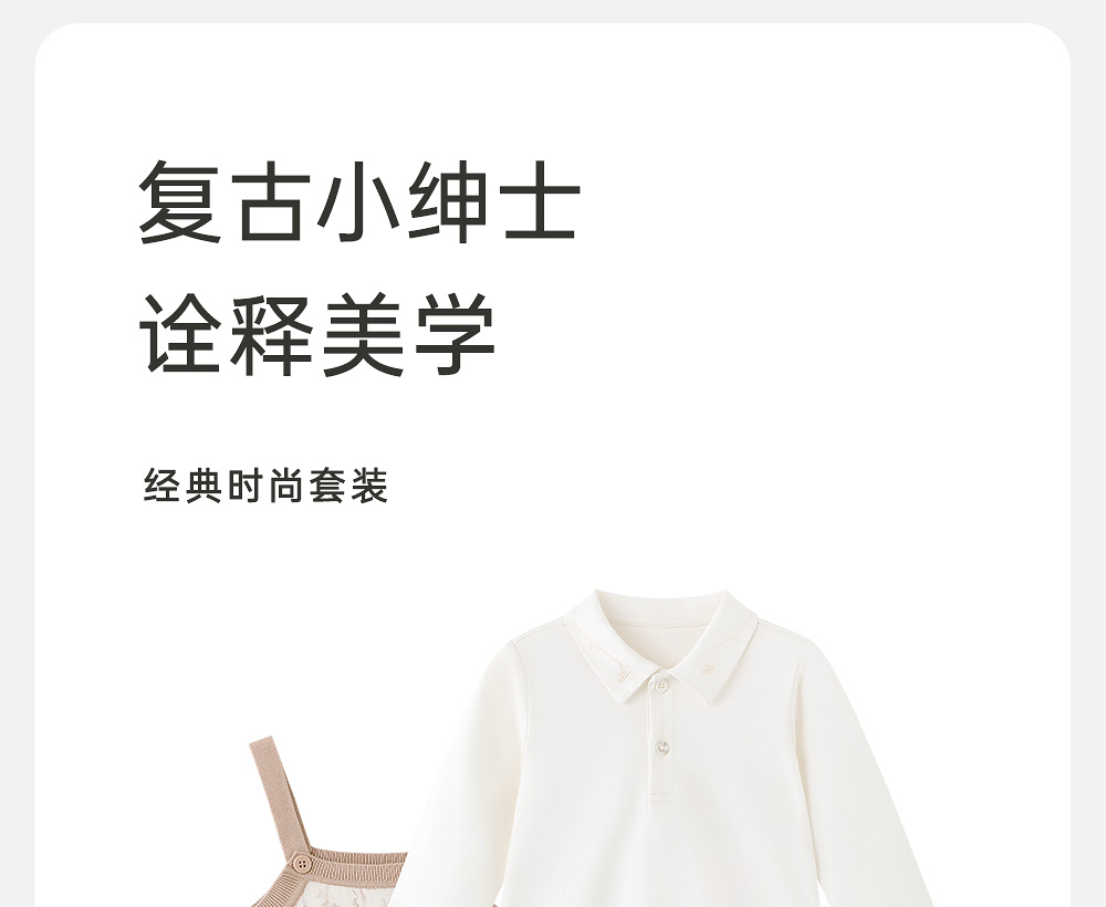 【高定系列】英氏婴儿衣服春夏时尚男童长袖衬衫连体衣桑蚕丝套装
