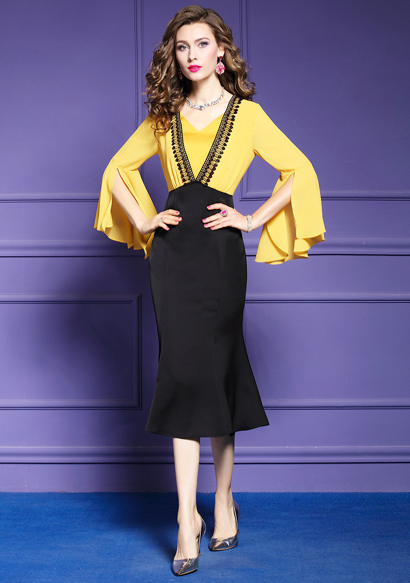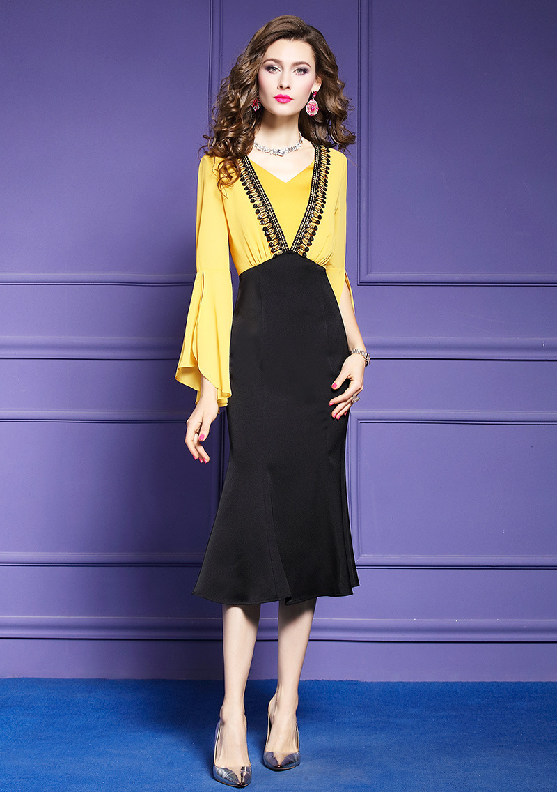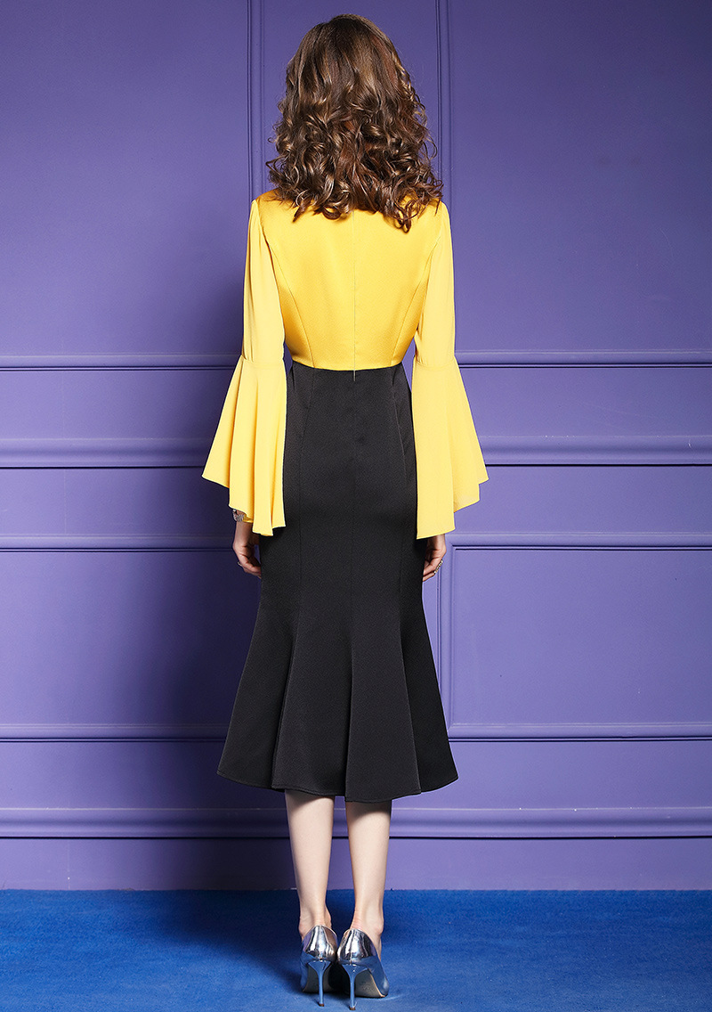 FMY29854新款高端优雅气质高腰显瘦拼接中长款鱼尾裙
