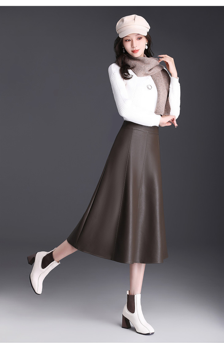 高腰PU皮裙中长款半身裙,时尚女装A字裙MYX-YZM-6881-Y