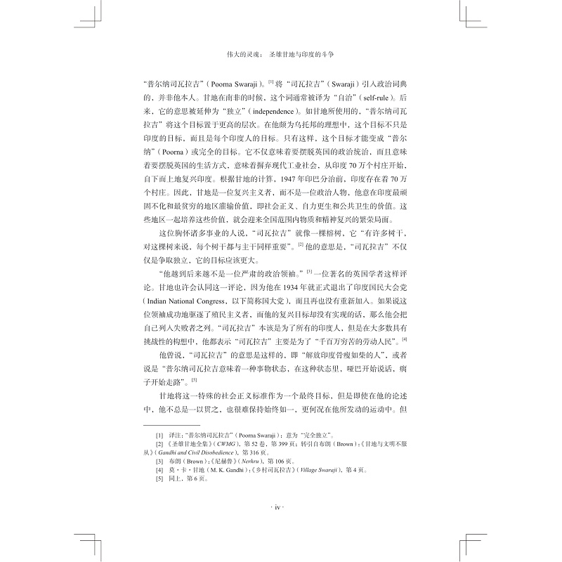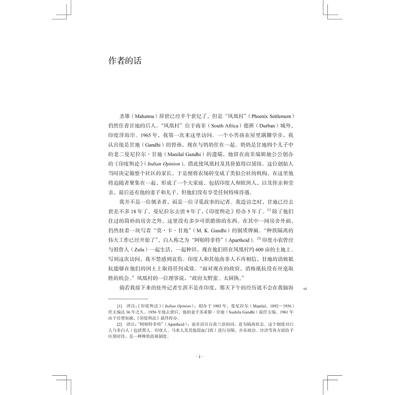 圣雄甘地是印度著名的政治家,他的政治思想和实践对于印度、南亚甚至整个亚洲和世界都有着巨大影响。这本圣雄甘地的传记主要侧重于叙述甘地在南非期间和回到印度之后的人生历程。它是西方学术界对于圣雄甘地的最新研究成果,对于圣雄甘地的生平记叙详尽,有一定的深入挖掘。