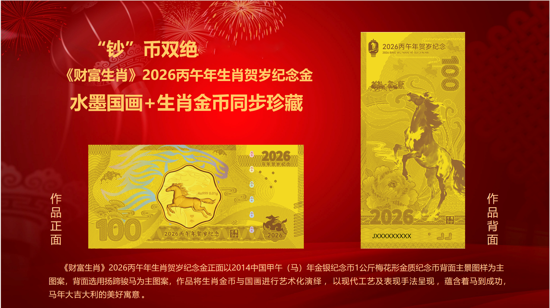 【中国人民银行官方授权 含金钞币一体】《2026金马财富生肖·丙午年生肖贺岁纪念金》含10mg999足金 (水墨国画✖生肖金币)