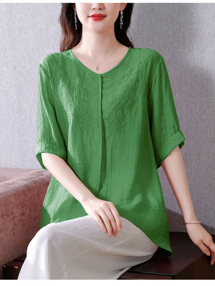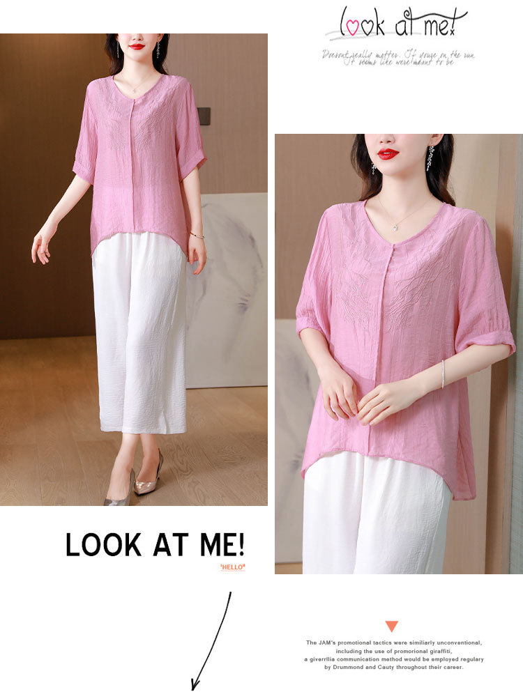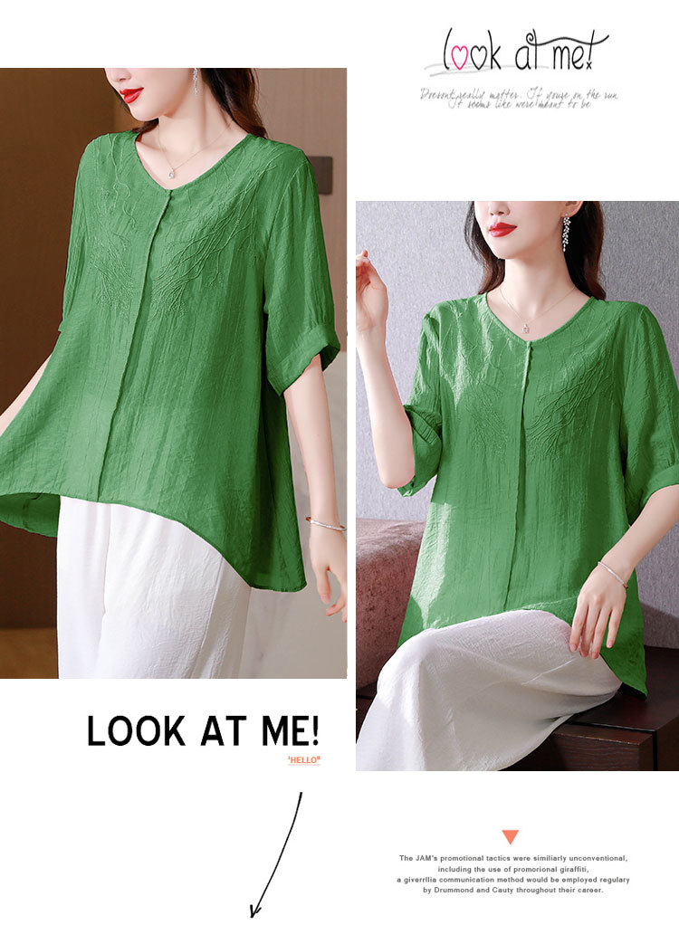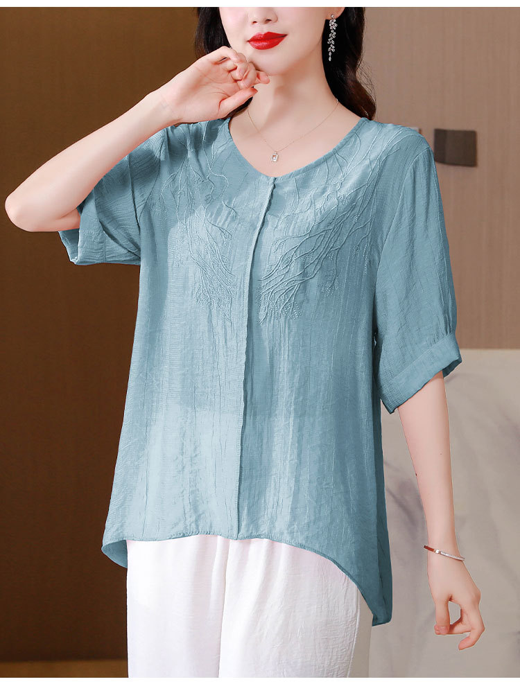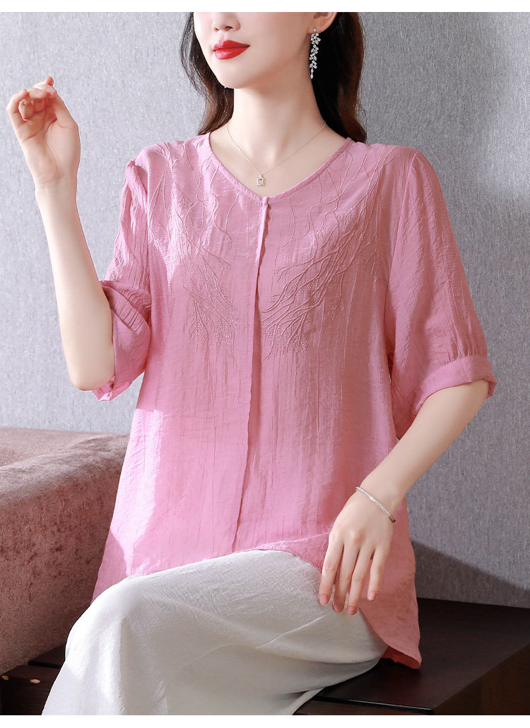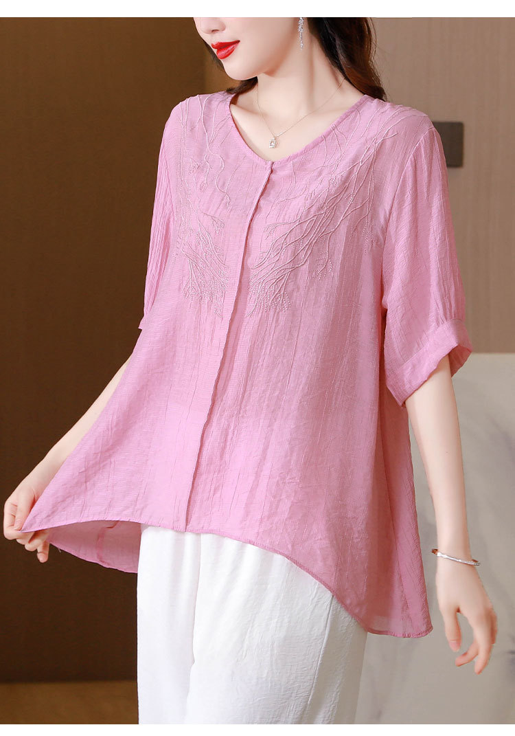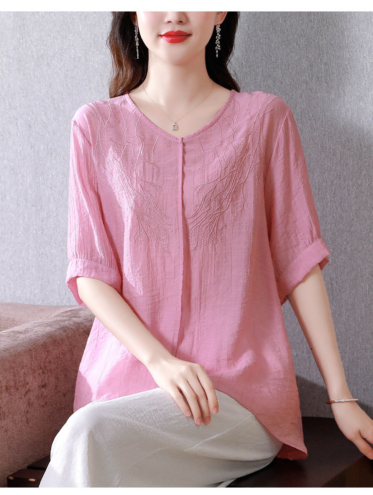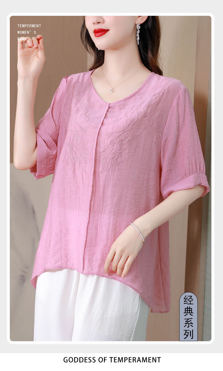 KQL-A83N6276大码新款夏季复古文艺刺绣百搭上衣