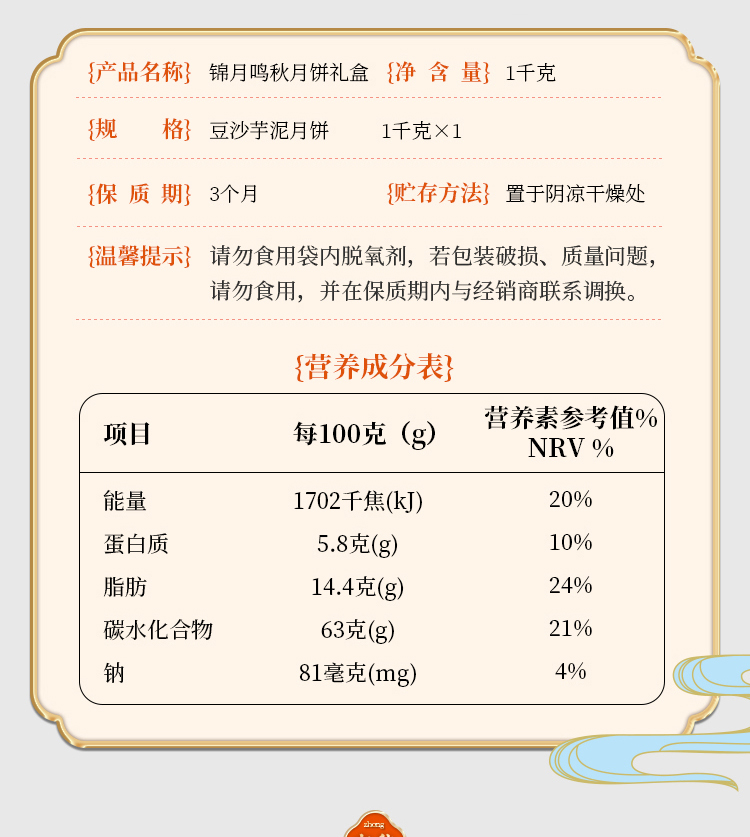 陶陶居锦月鸣秋月饼1000g
