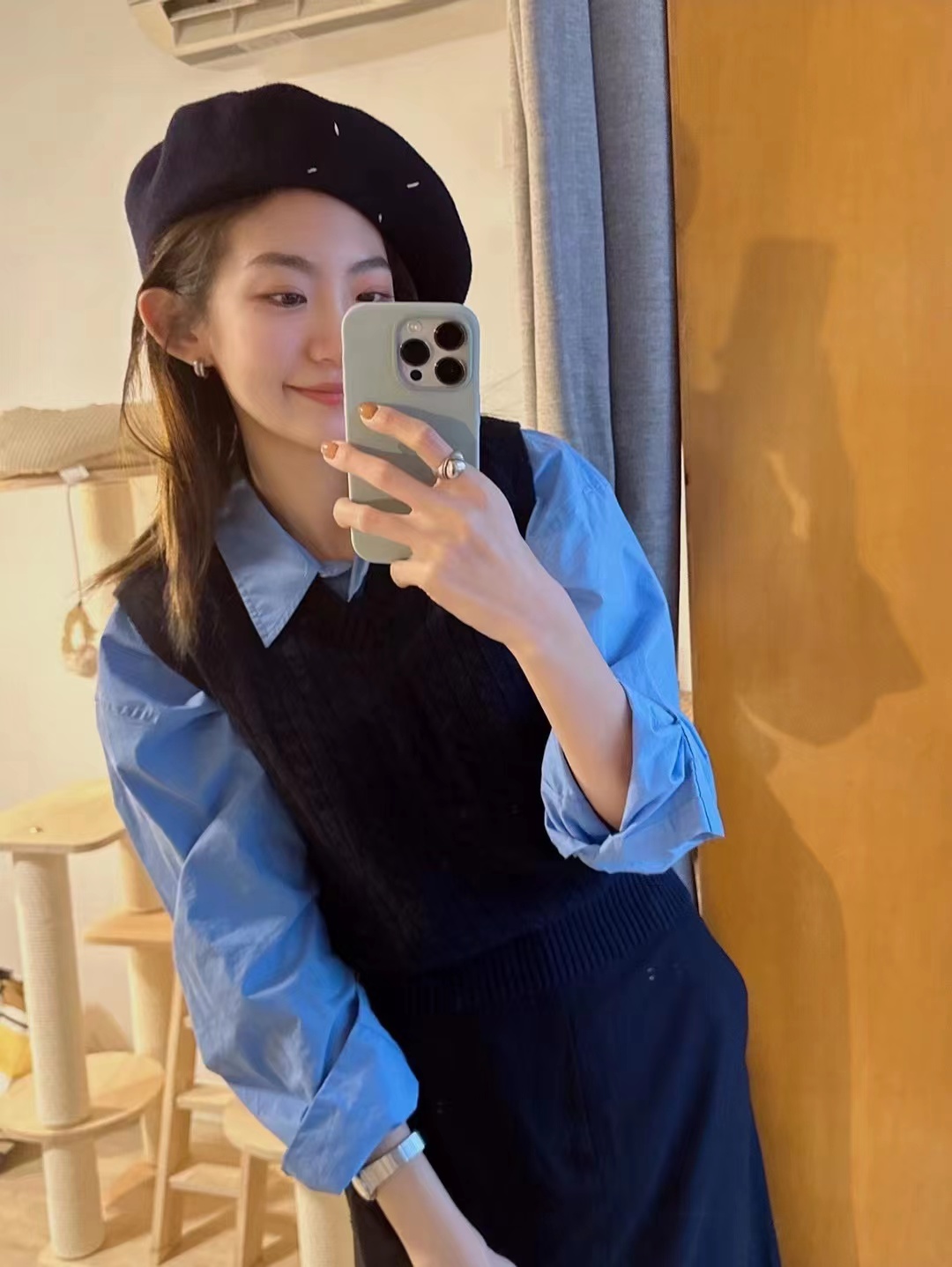 说到贝雷帽,我一下子就想到石原里美和IU呢,明朗又活泼。天气一转冷,一进到真正的秋天,我觉得最想推荐的帽子就是贝雷帽了,有一定的保暖效果,兼有时髦感,驾驭起来比毛线帽更有高级感,虽然没有那么休闲,但是通勤佩戴,也不会隆重,还是很日常仪式感,像是装扮了,又没有特别装扮。