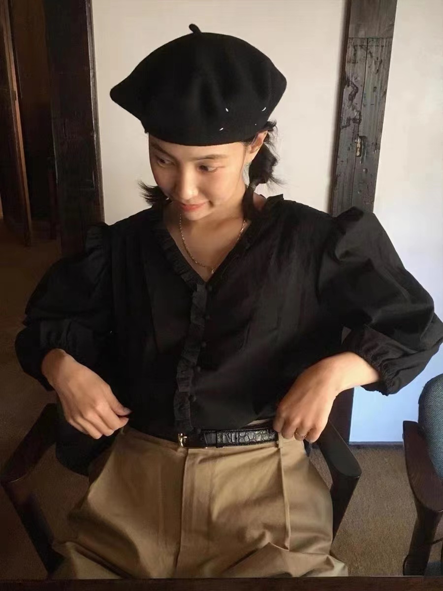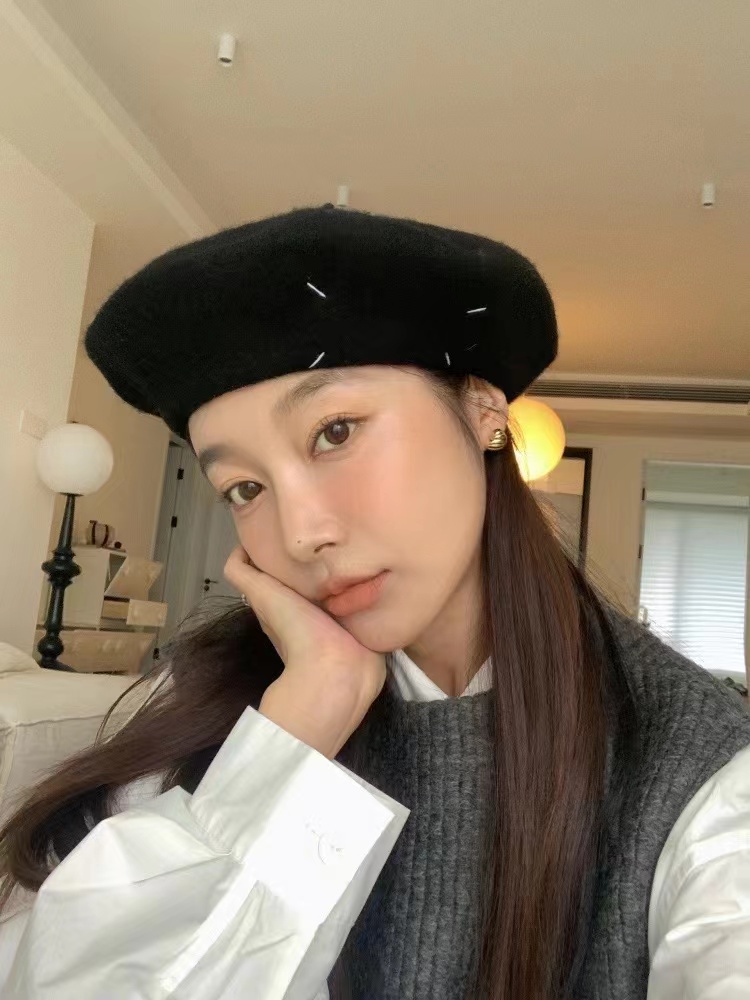 贝雷帽的佩戴方法,可以是测戴,也可以是后戴,如果平时亲们习惯佩戴贝雷帽的话,就可以轻轻松松get一个法式或减龄日式的风格了。一戴上,就立马有了的那种。相对而言,侧戴更加法式随意一些,后戴更加减龄活泼一些。如果头发有一些卷度的话,自然就更up;短直发也没有关系,黑色的贝雷帽还能打造chic的味道。