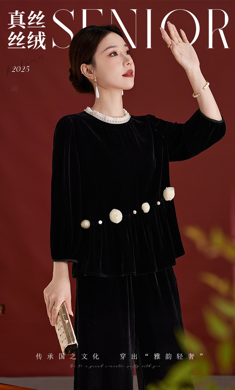 QS真丝源头工厂设计感秋季新款长袖衬衫真丝丝绒高级感女款上衣1987