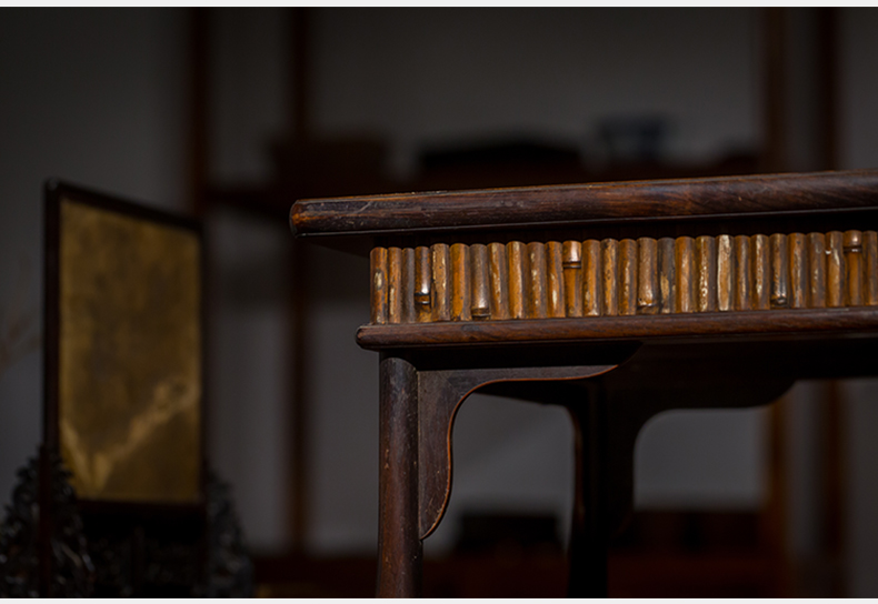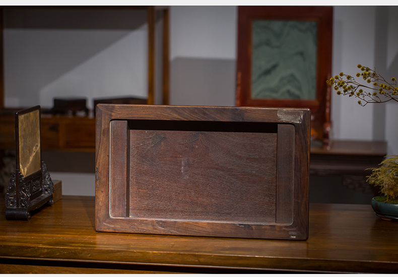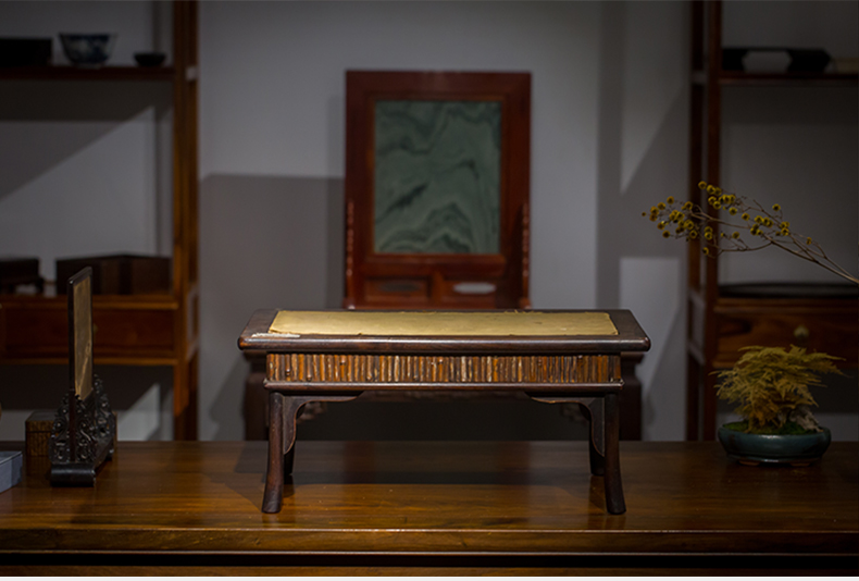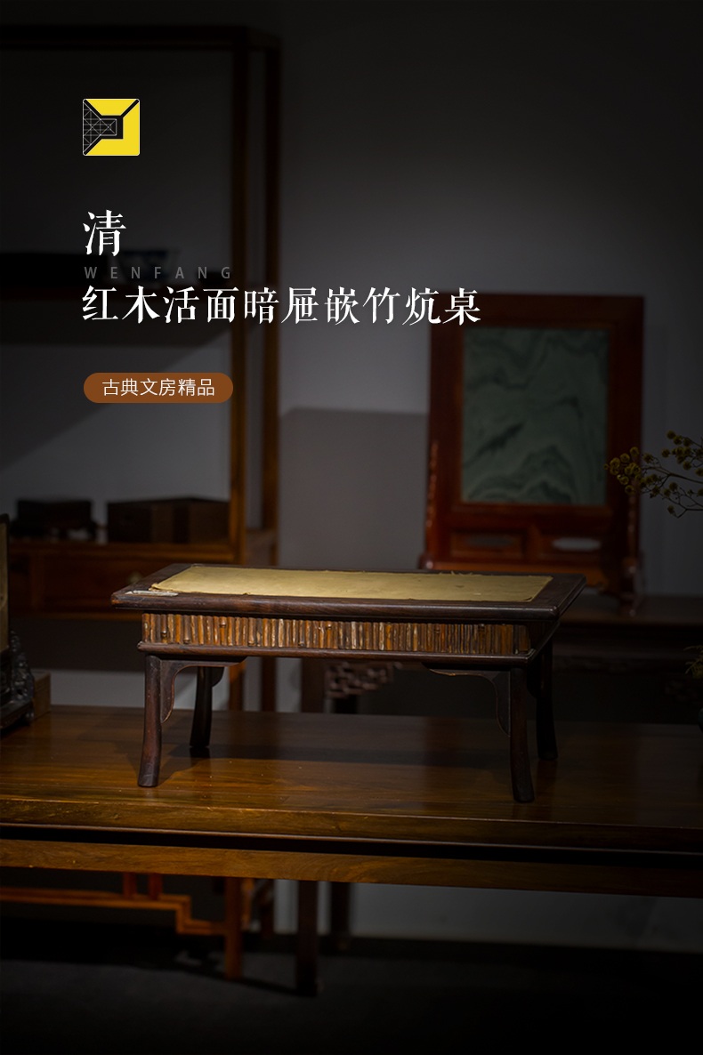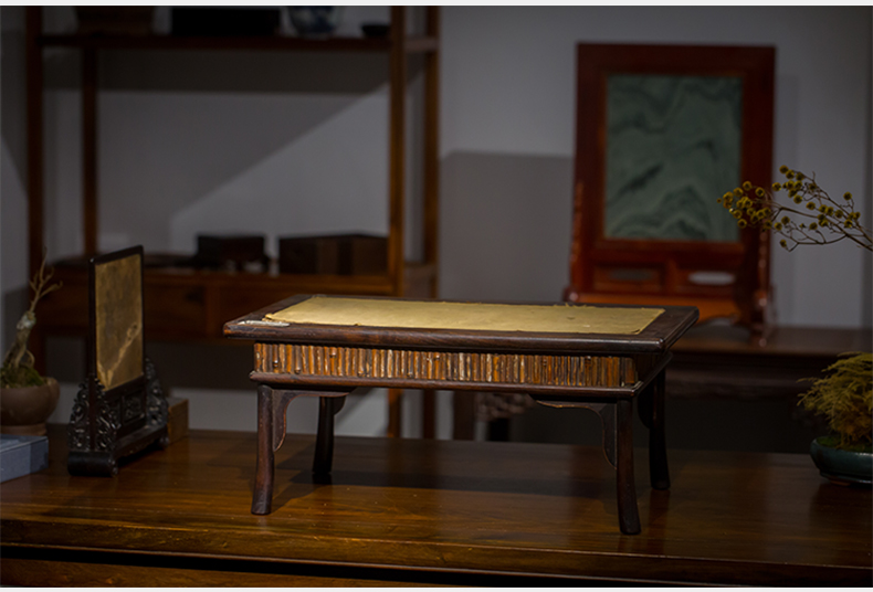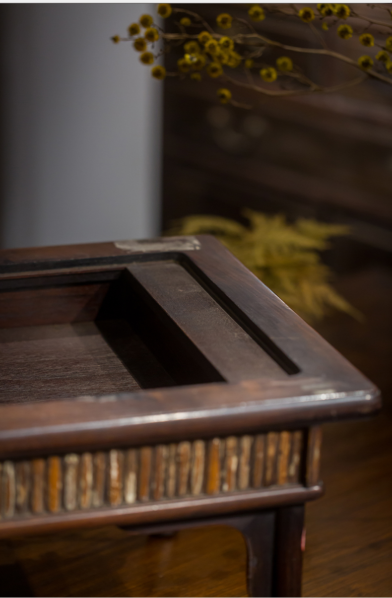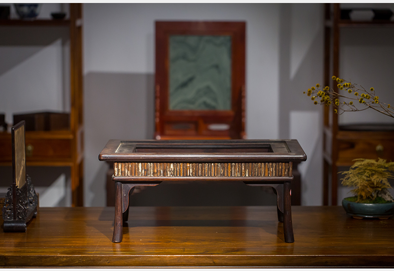 二十世纪 红木嵌云石透雕拐子纹百灵台