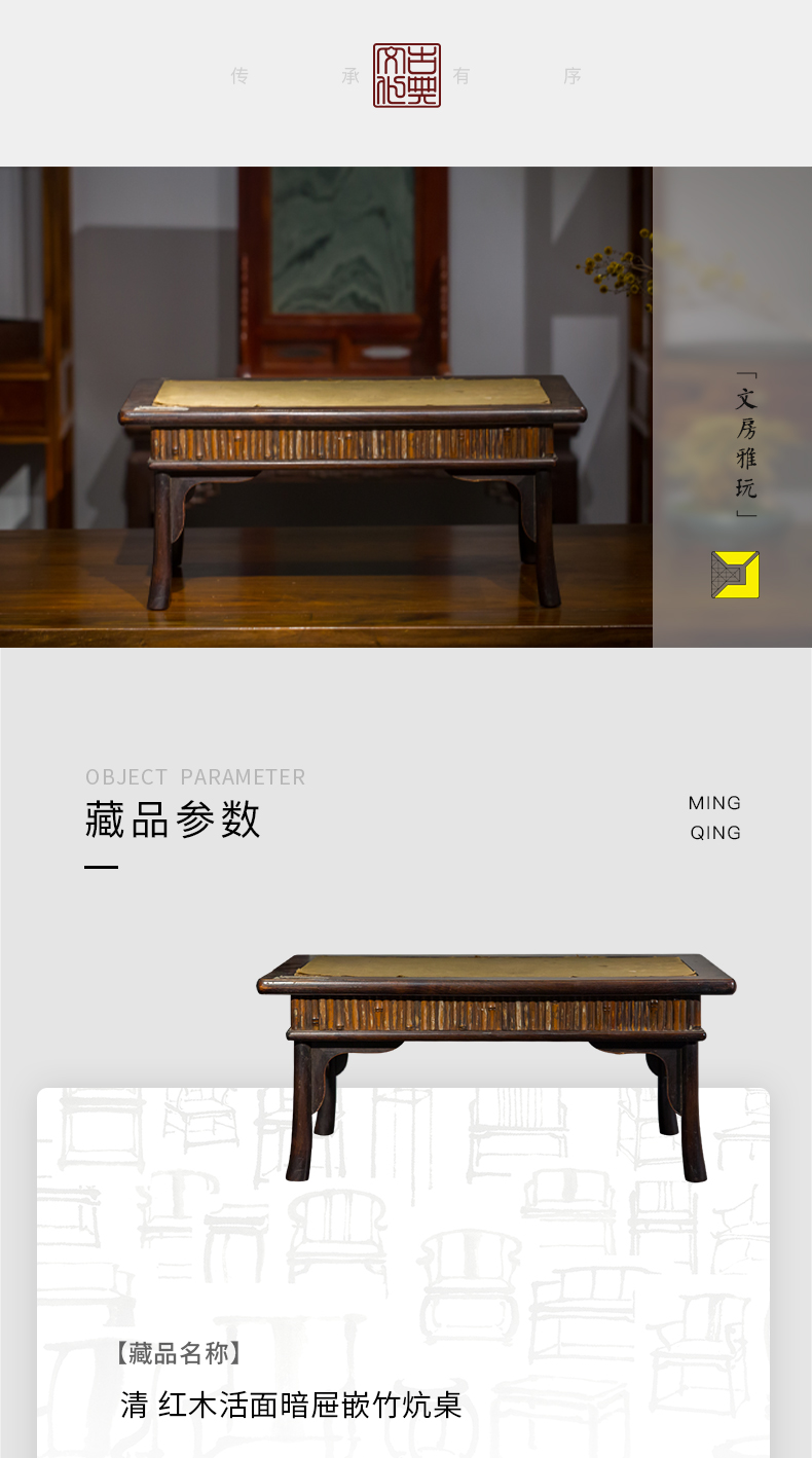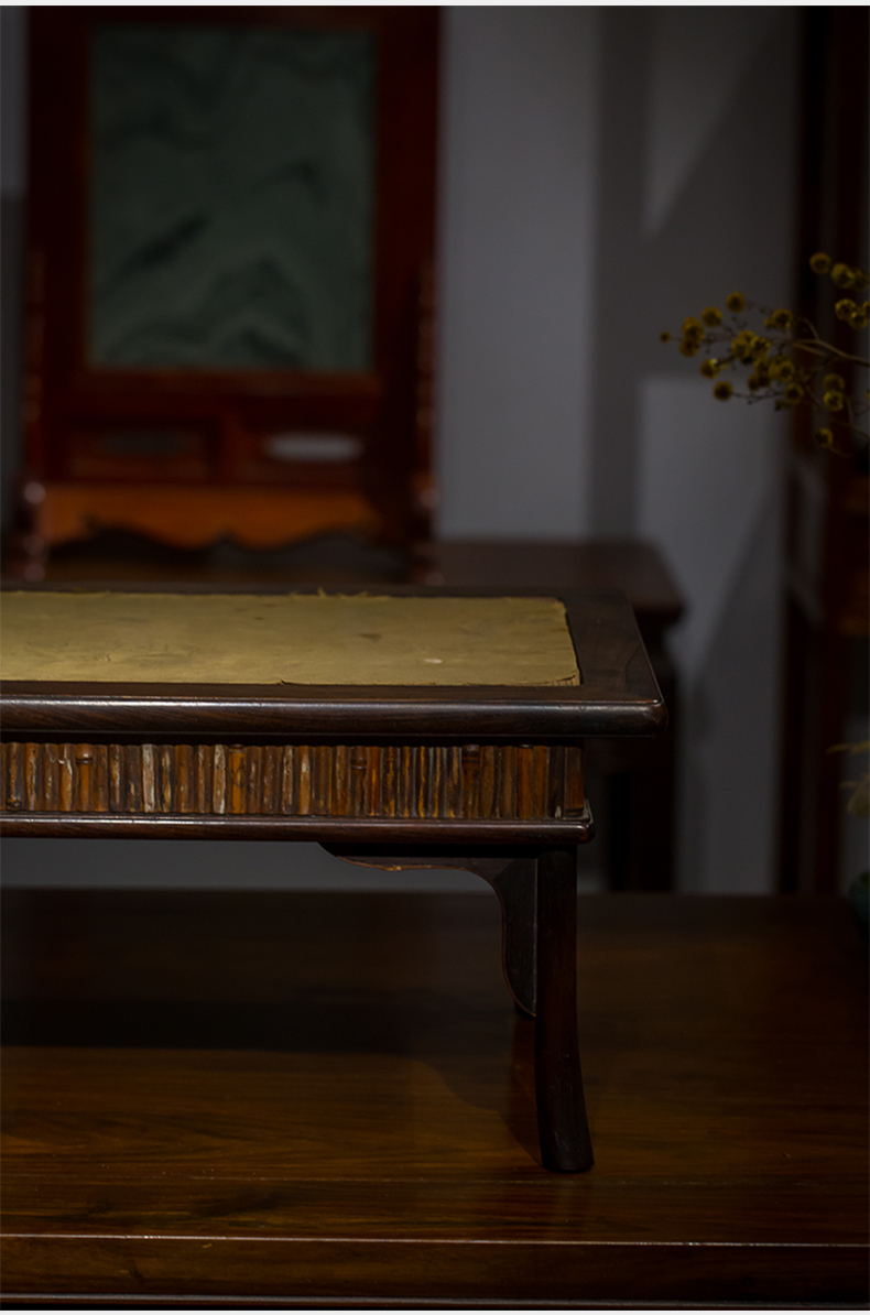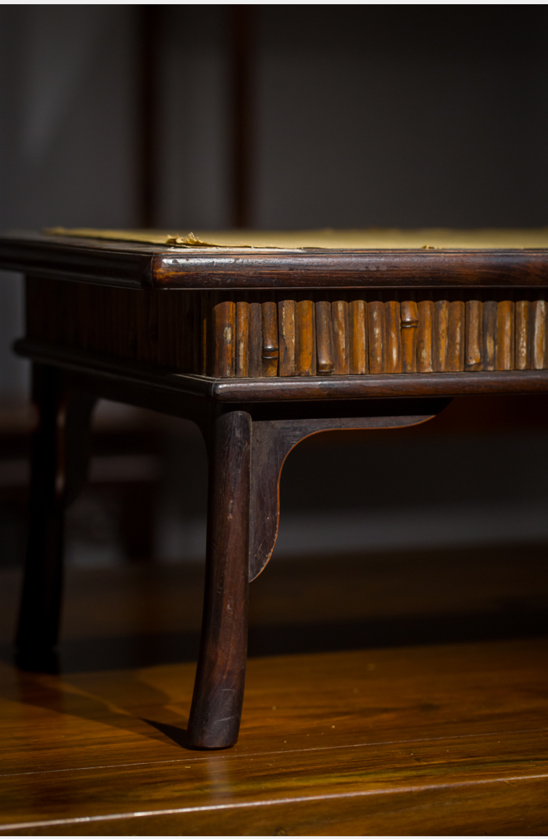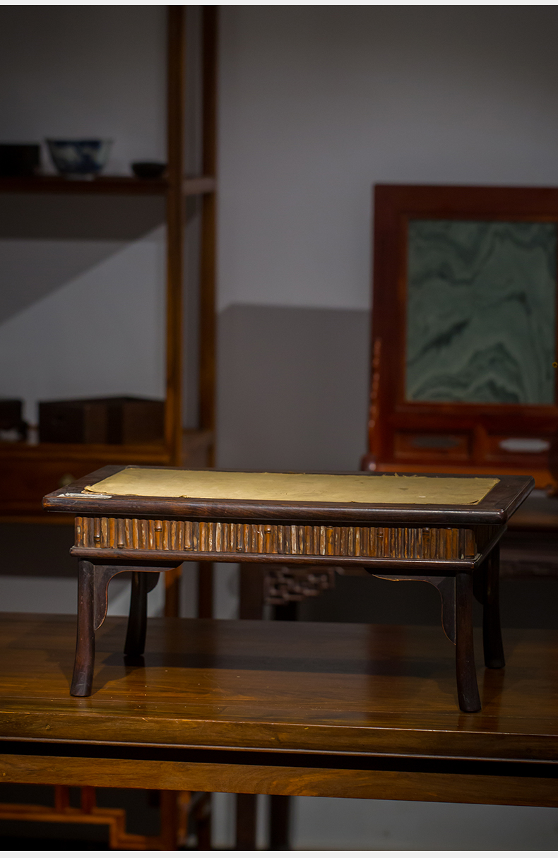 二十世纪 红木嵌云石透雕拐子纹百灵台