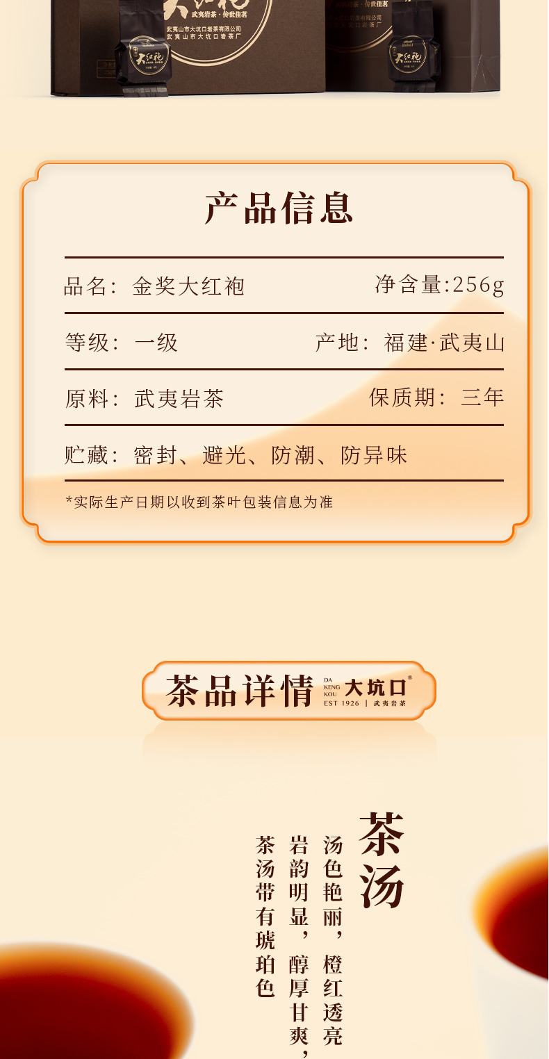 【大坑口茶业】碳焙金奖大红袍 256g/份
