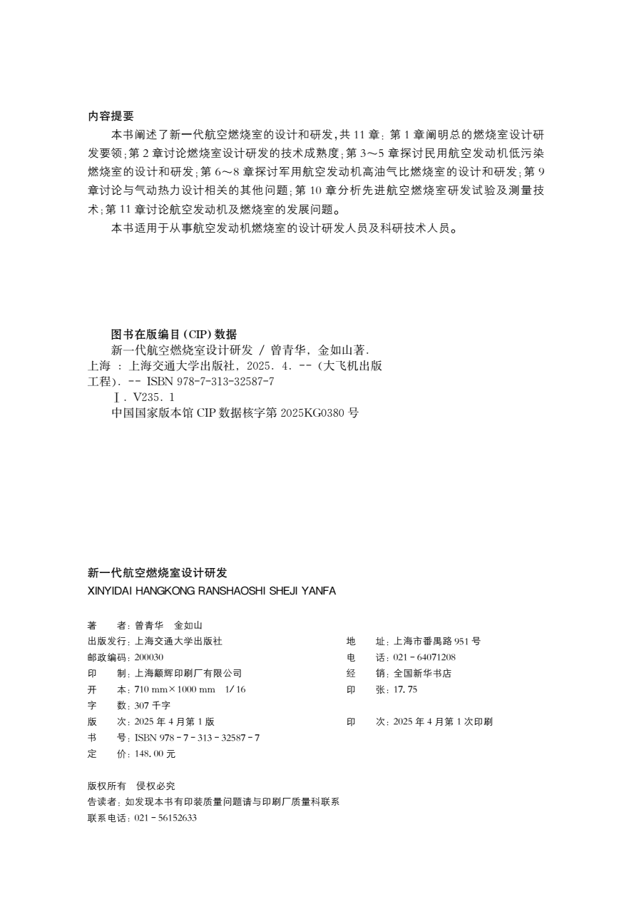 本书阐述了新一代航空燃烧室的设计和研发,共11章: