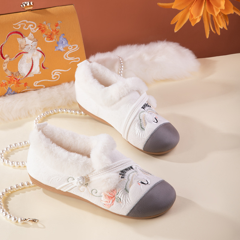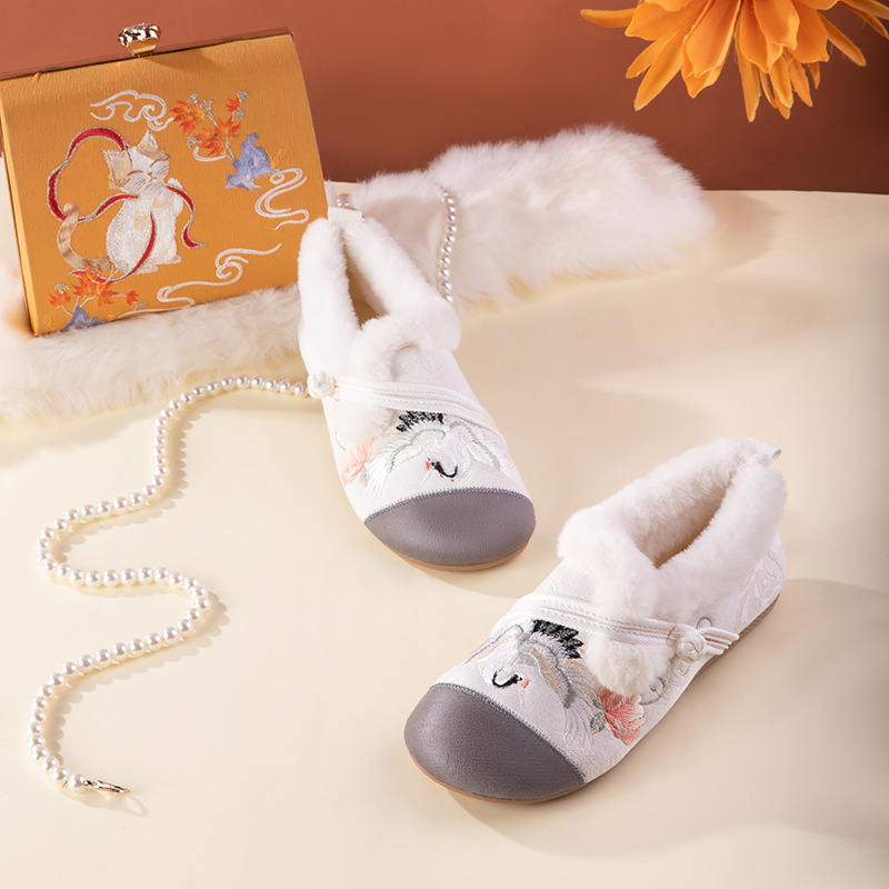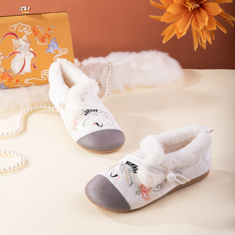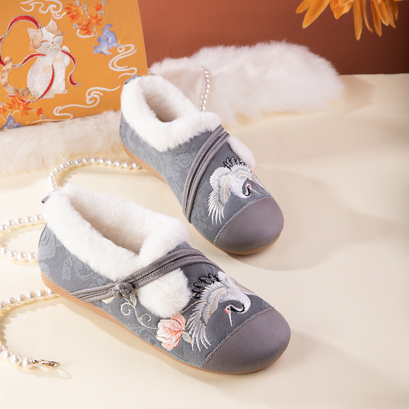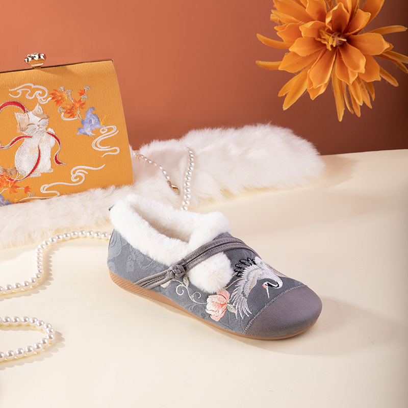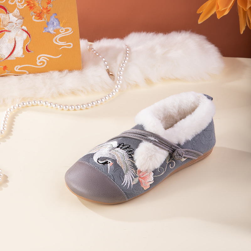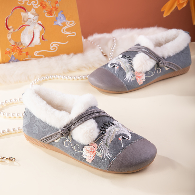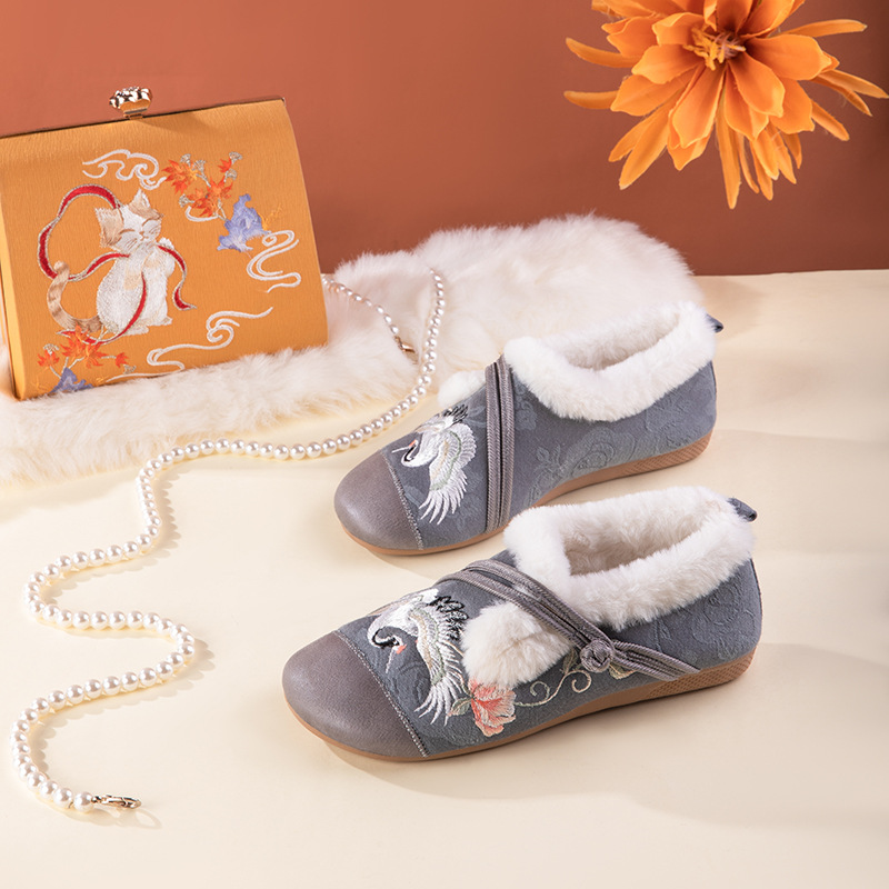 古风刺绣加棉加厚毛口鞋,绣花鞋民族风绣花布鞋YXN-EJ8701-22