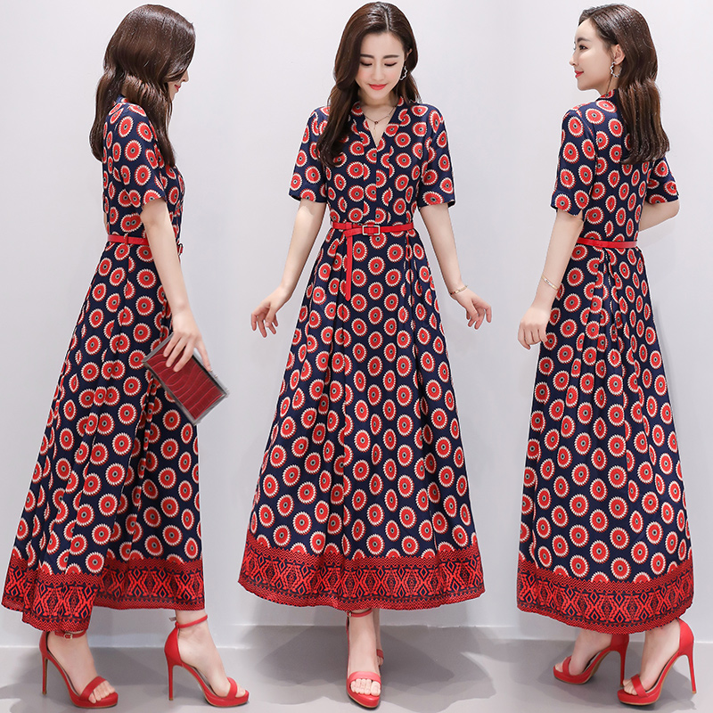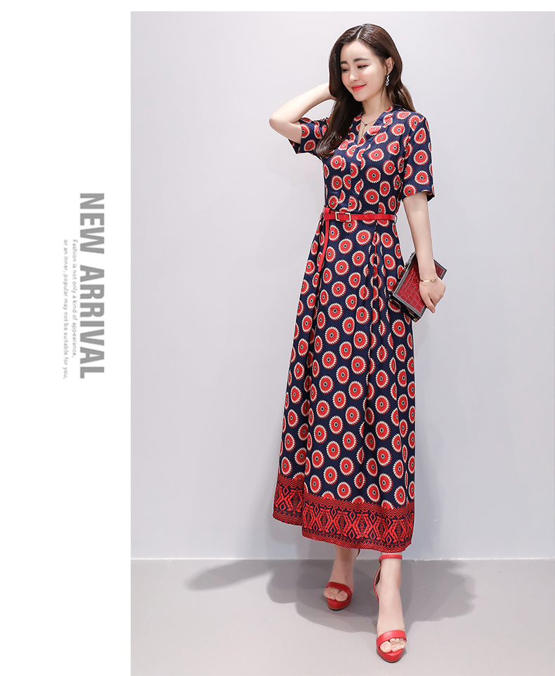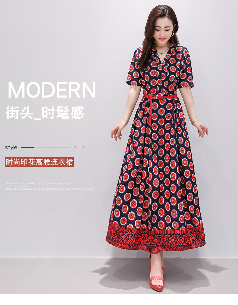 WZNH-LXI962新款欧美大牌气质显瘦洋气印花V领高端连衣裙