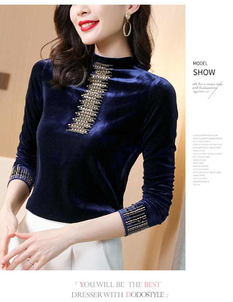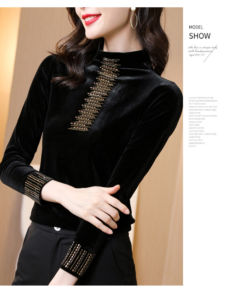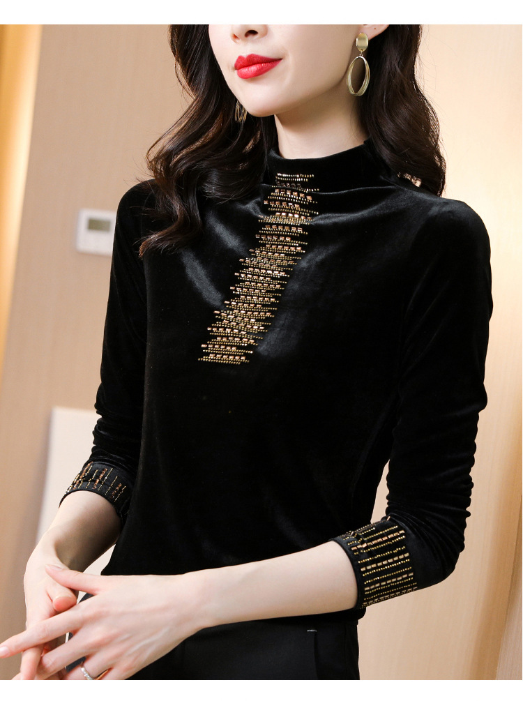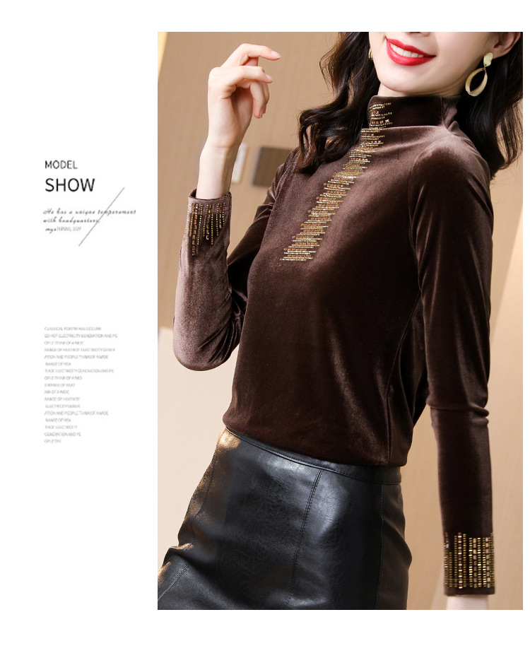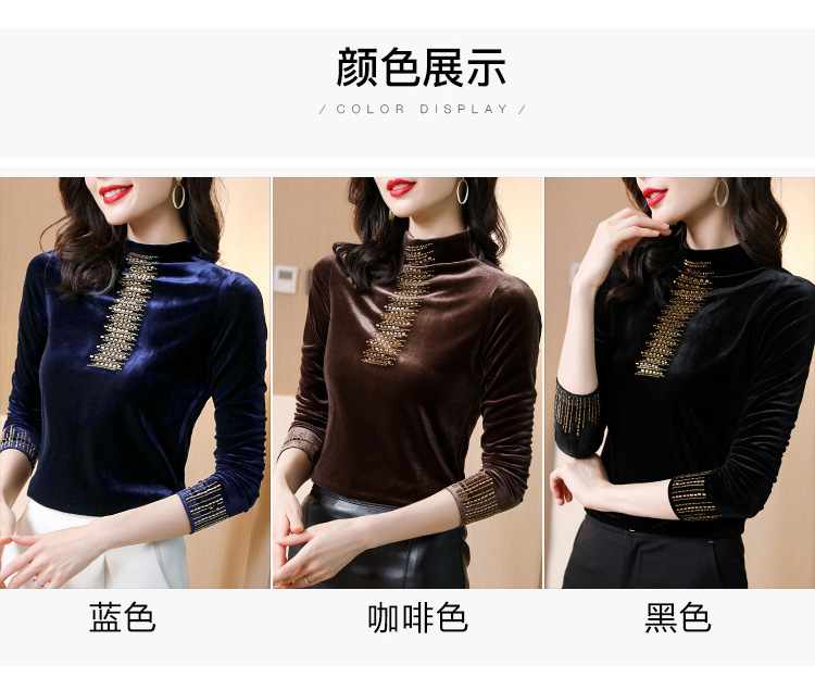 雀说半高领加绒加厚打底衫女内搭秋冬洋气保暖小衫长袖T恤金丝绒上衣ALW5500
