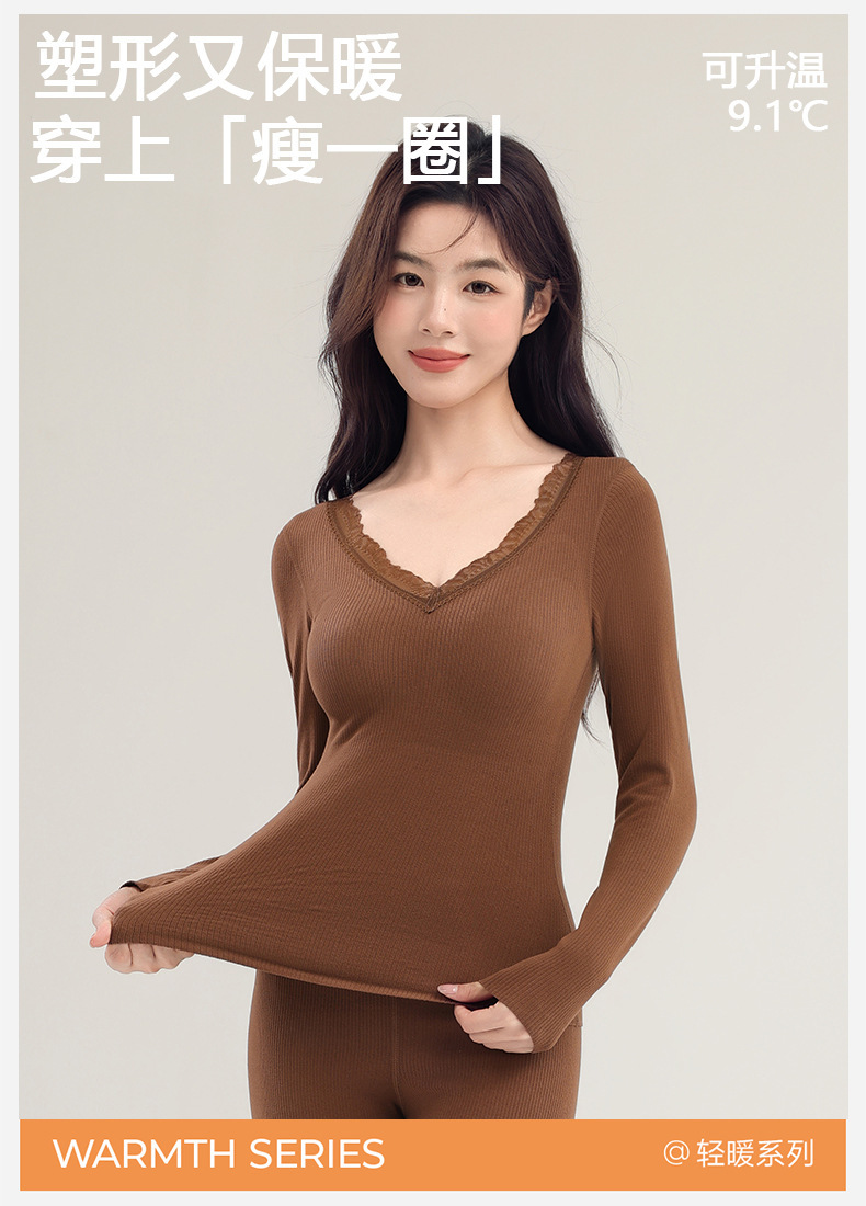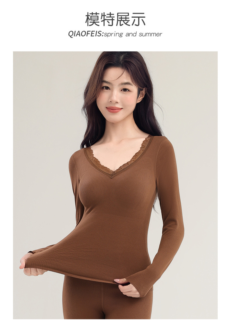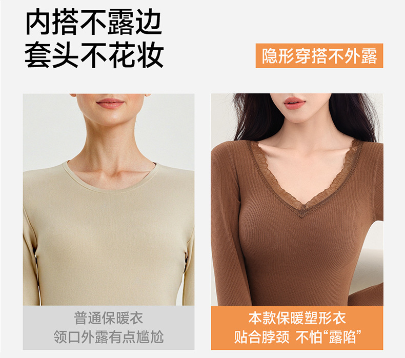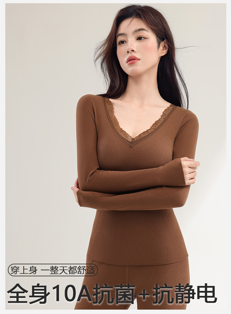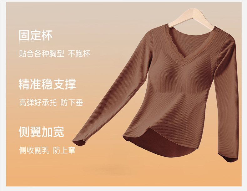 雀说 蕾丝秋冬羊绒蚕丝保暖内衣女带胸垫单件上衣