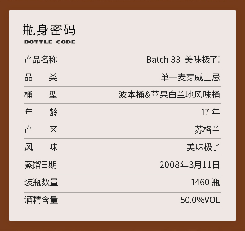 【SMWS】 Batch 33 美味极了! 17年 单一麦芽 苹果白兰地风味桶 威士忌