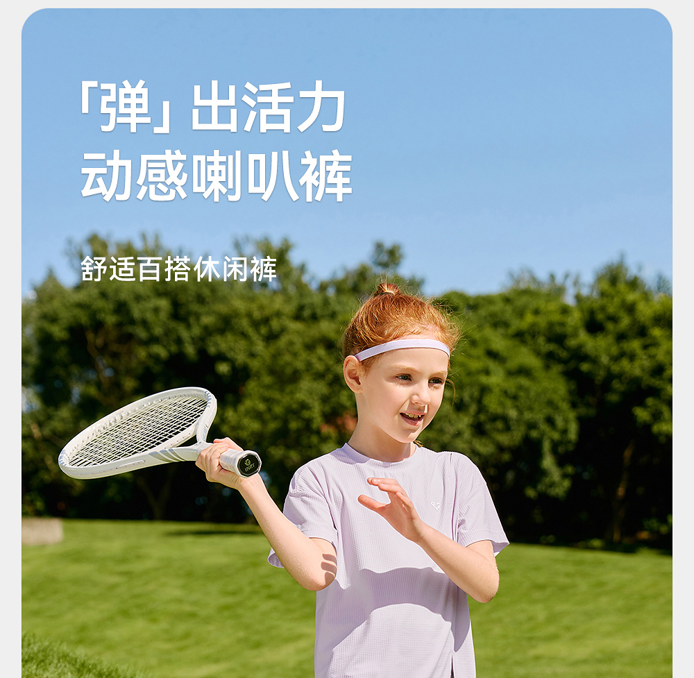 英氏儿童裤子夏季透气凉感长裤女童休闲裤中大童微喇叭裤2025新款